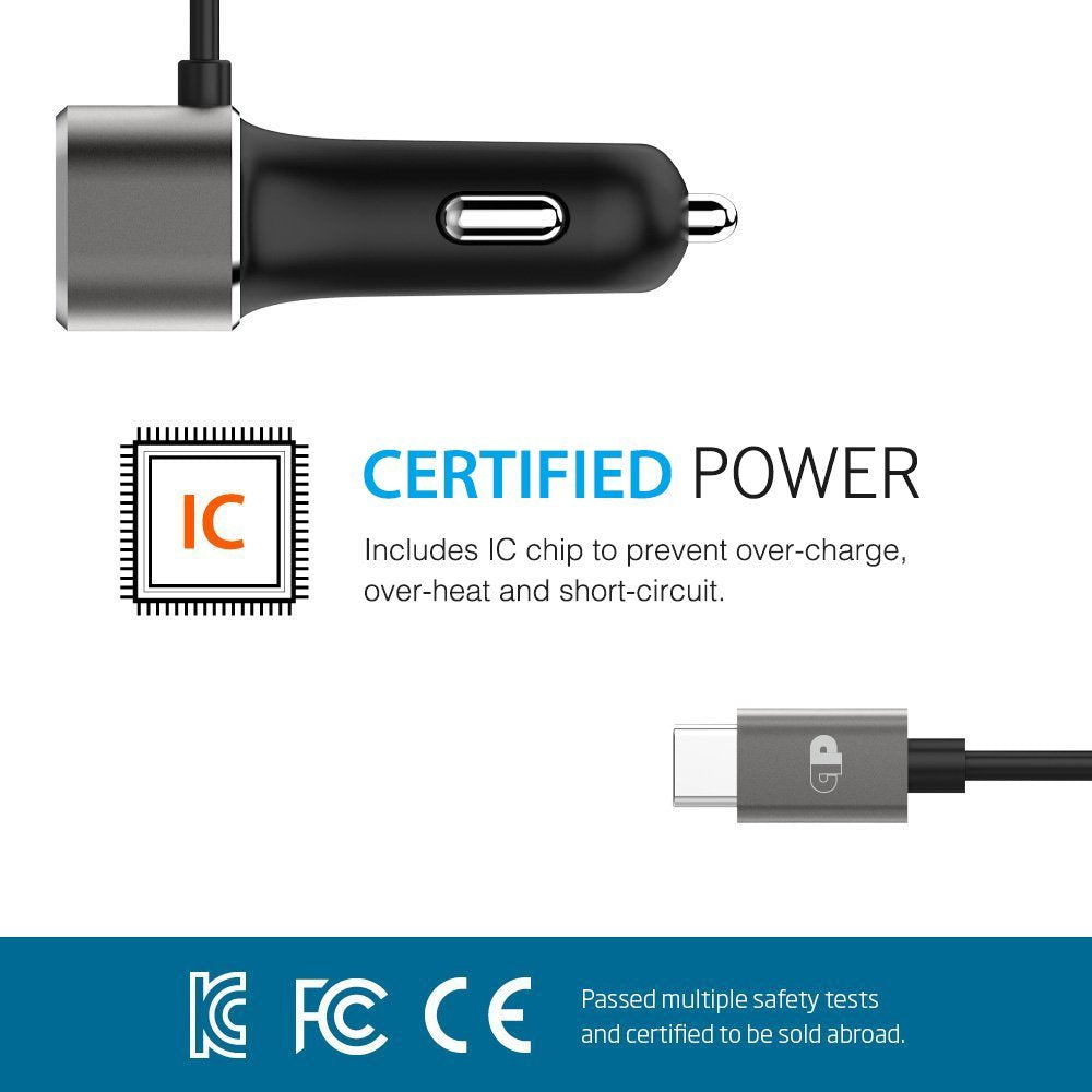 Press Play Single-Port Fixed Cable USB-c Car Charger - Black
