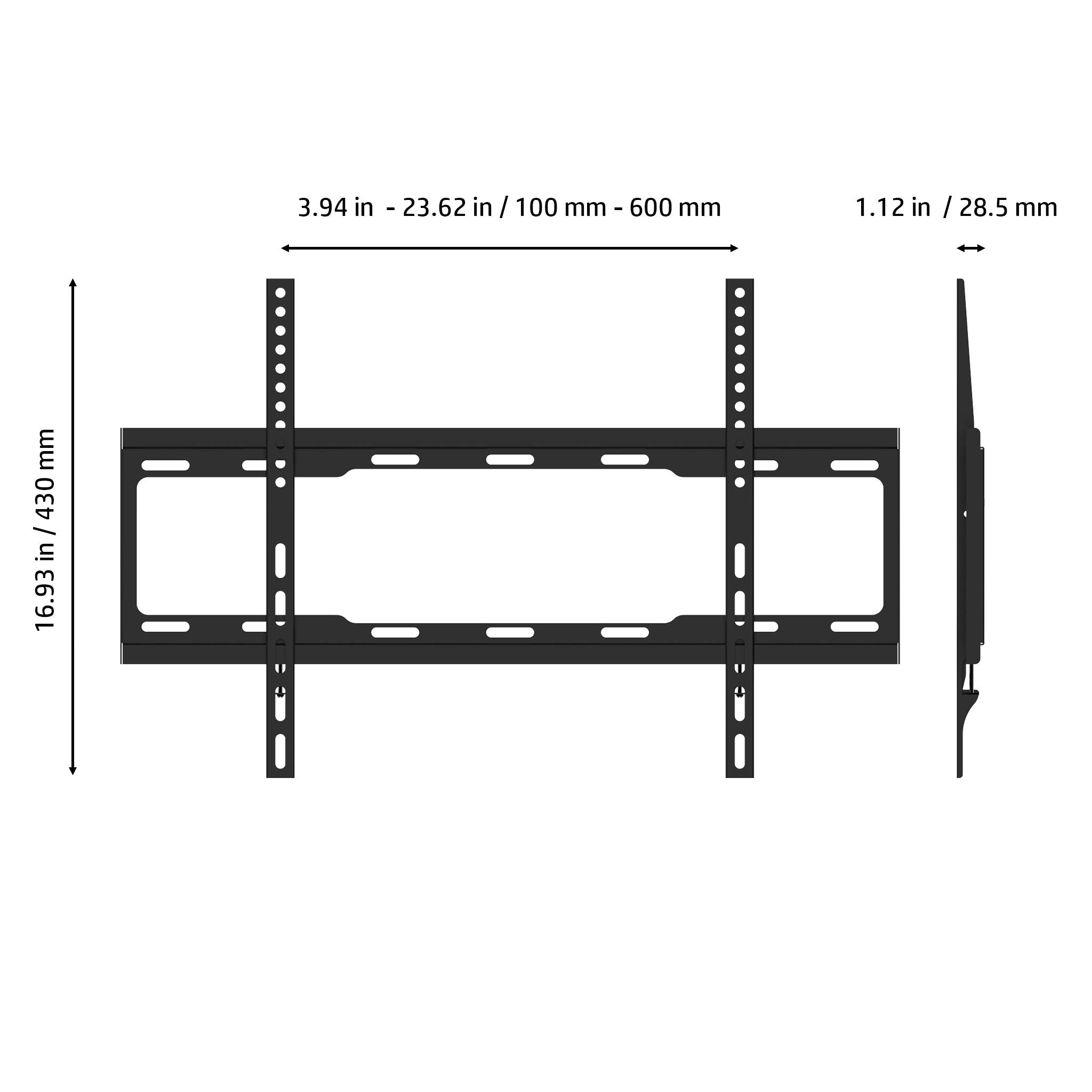 Promounts Flat Low Profile TV Wall Mount Bracket for 42-80" TVs up to 100 lbs, VESA up to 600x400 with Bubble Level (FF64), Black