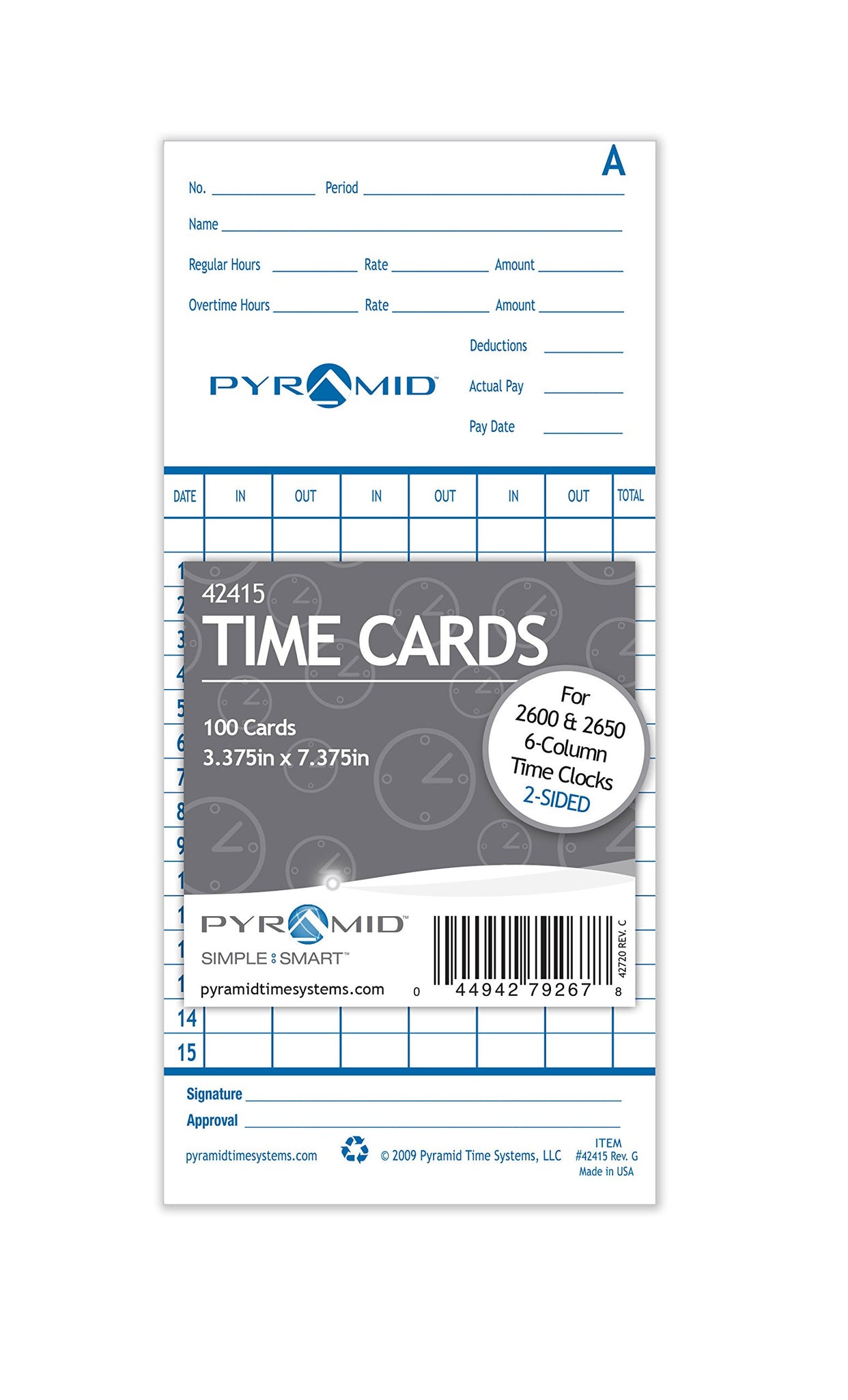 Pyramid42415 Genuine Time Cards for 2600 & 2650 Auto Aligning Time Clocks, 100/Pk