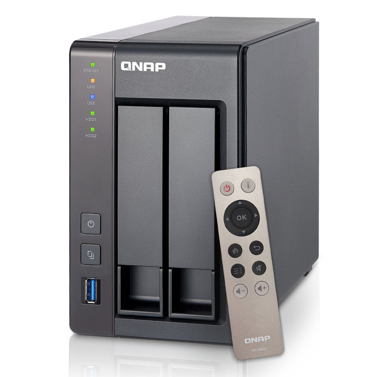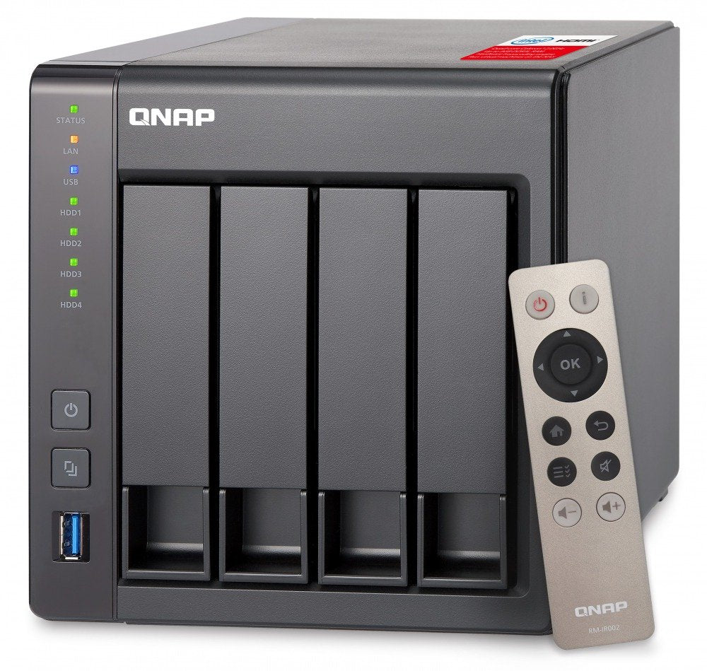 - Intel Celeron Quad-Core 2.0GHz, 2GB DDR3L RAM (max 8GB), SATA 6Gb/s, 2 Giga LAN, hardware transcoding, HDMI out with Kodi, Virtualization Station, Surveillance Station. QNAP remote included.