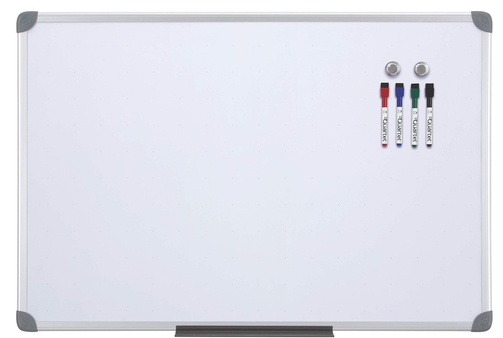 Details: Magnetic, dry-erase surface of the whiteboard doubles as a magnetic bulletin board to offer more functionality. European style, brushed aluminum frame delivers a polished look and complements any modern décor. Corner cap mounting system secures the 2' x 3' board to wall in four places for a more solid hold. Plus, board can be mounted vertically or horizontally to better fit your space. One Quartet dry-erase marker and two round magnet accessories are included. Convenient marker tray is attached to bottom of frame to keep all your accessories handy. 60-day warranty.