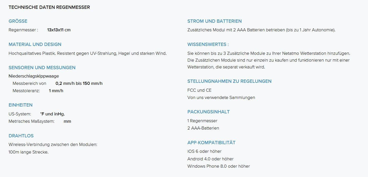- The Netatmo Rain Gauge only works with the Netatmo Weather Station, sold separately