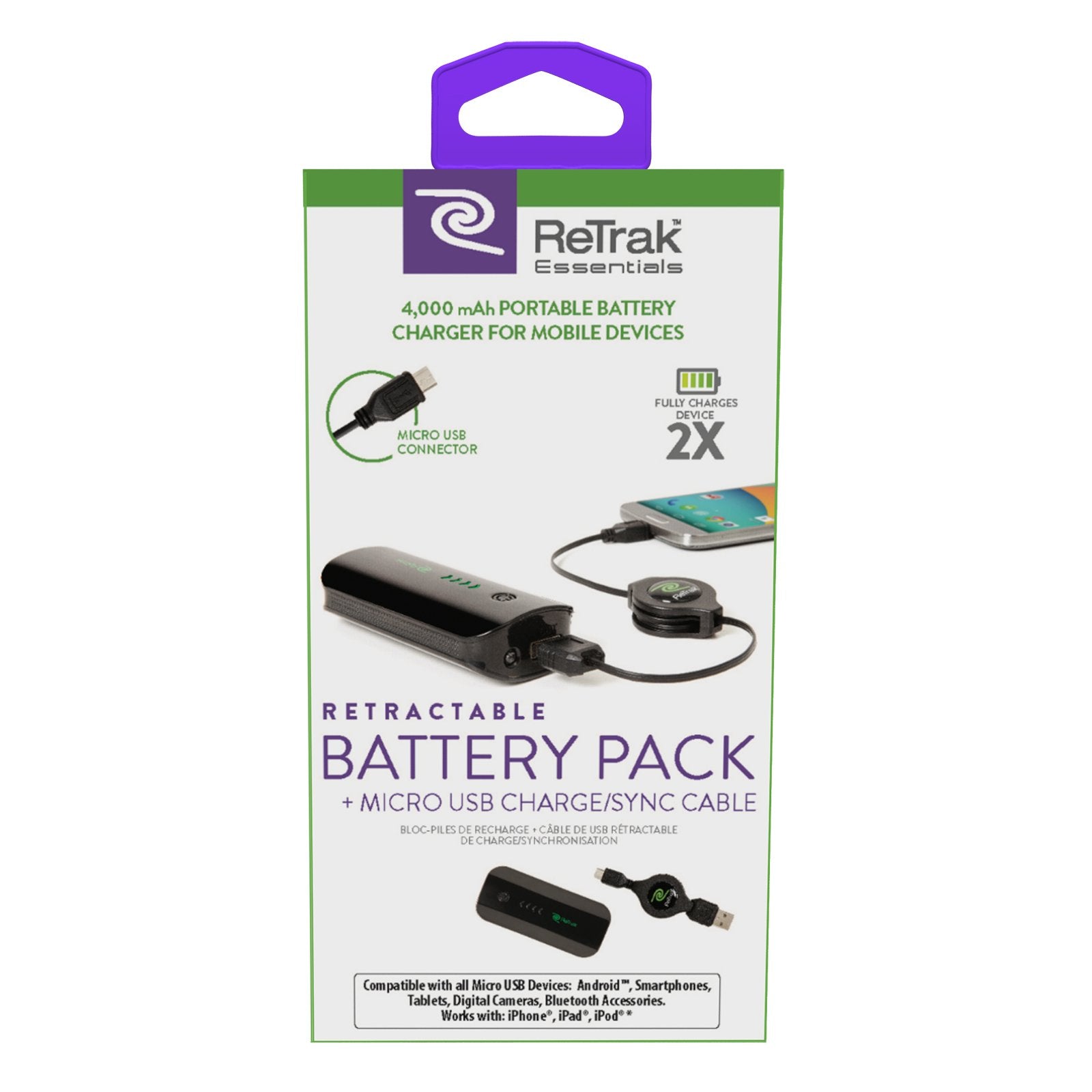 ReTrak(R) ETESPB4 Power Bank with Retractable Micro USB Cable (4,000mAh)