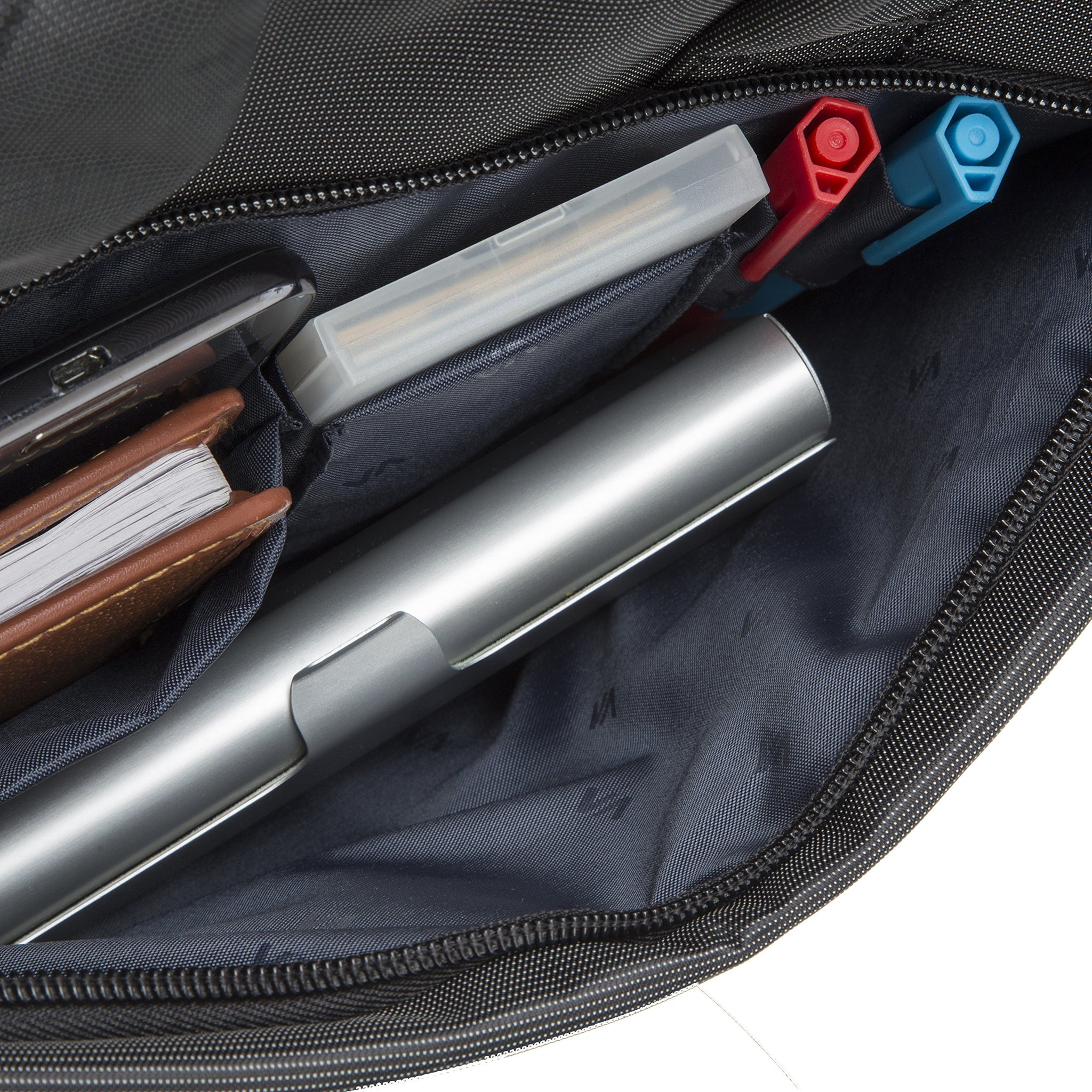 - Front pocket panel provides basic organization for mobile phone, documents, and accessories