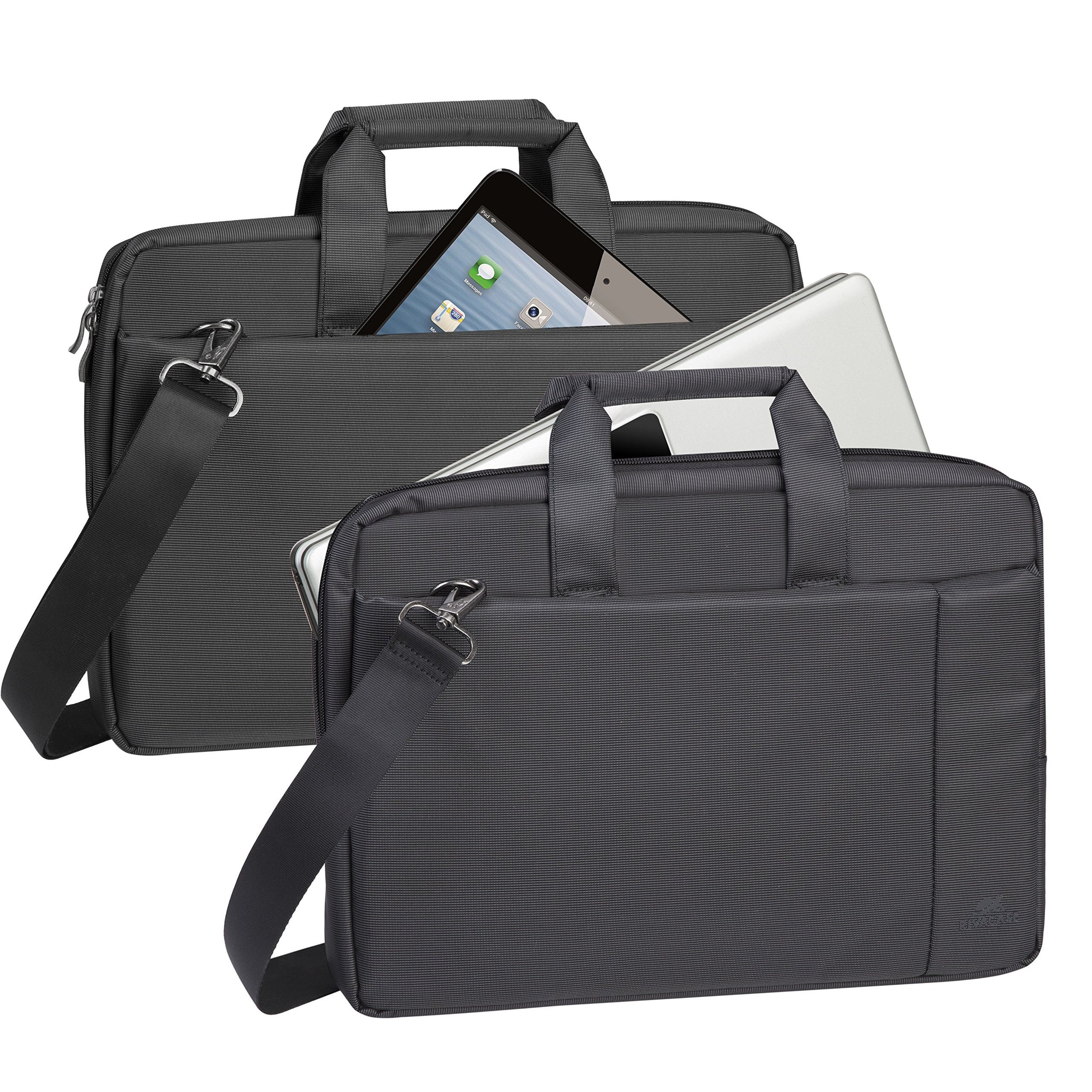 Rivacase 15.6 inch Laptop Bag w/Adjustable Strap and Anti-Slip Shoulder Pad - Black