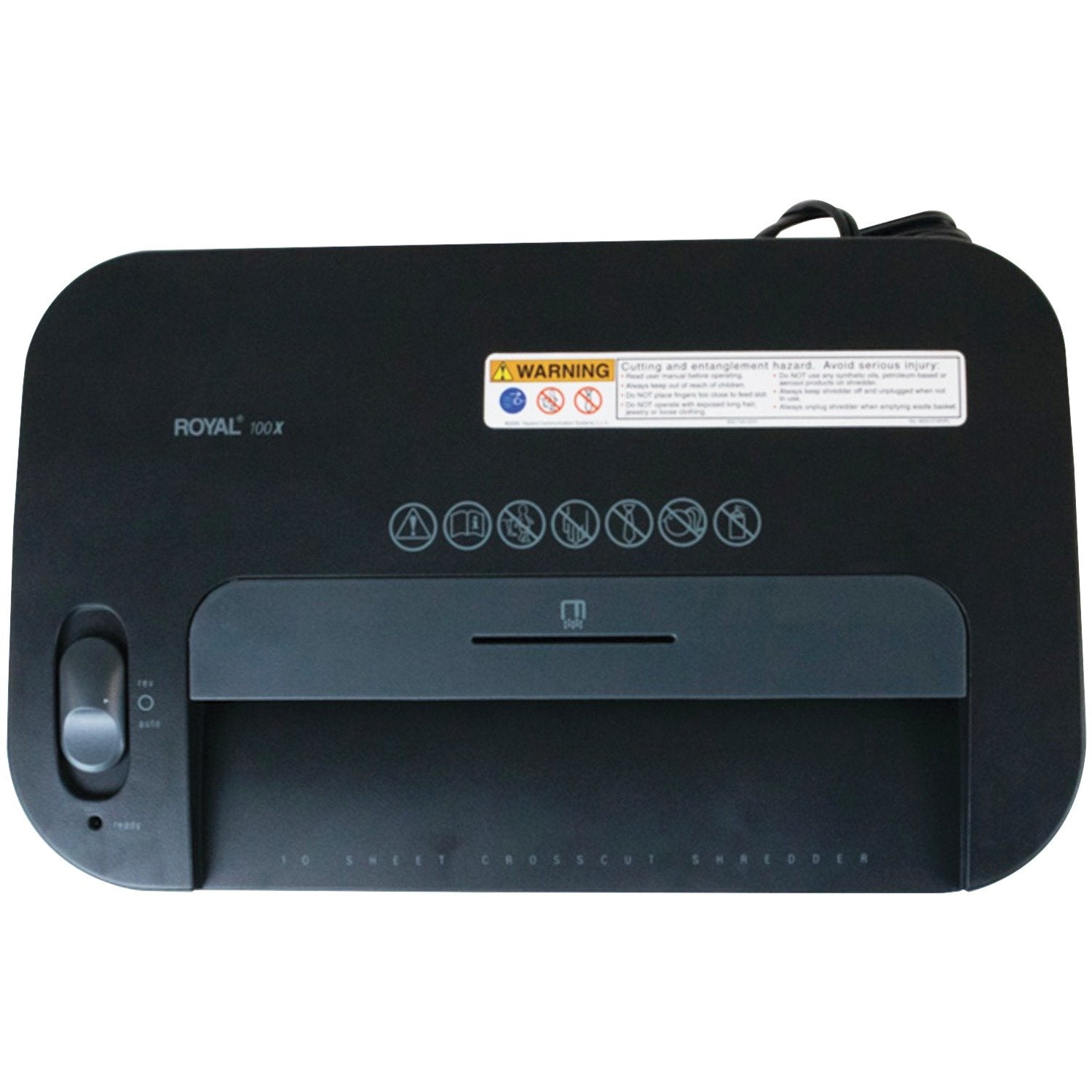 - Royal machines 100x shredder 10-sheet full size cross cut w/console