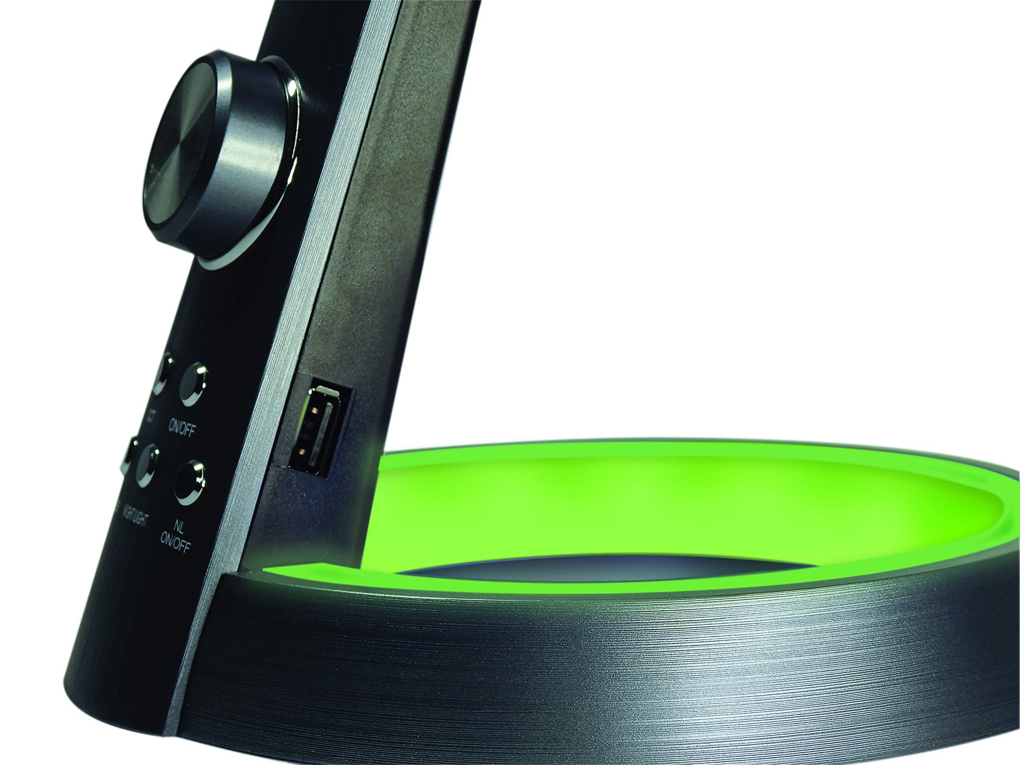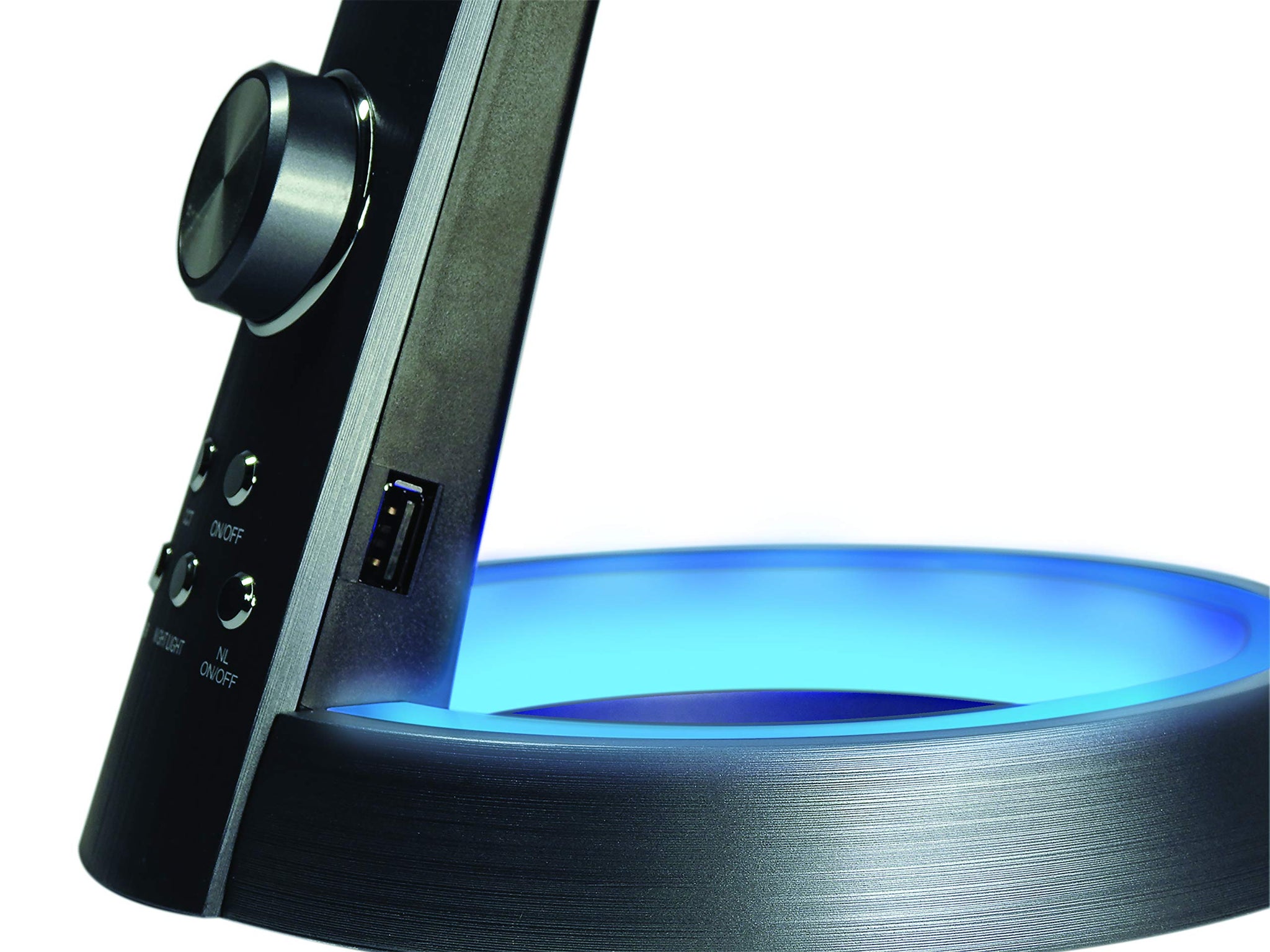 Royal Sovereign RDL-110U LED Desk Lamp with USB and Night Light Black & Titanium Grey with Chrome Accents