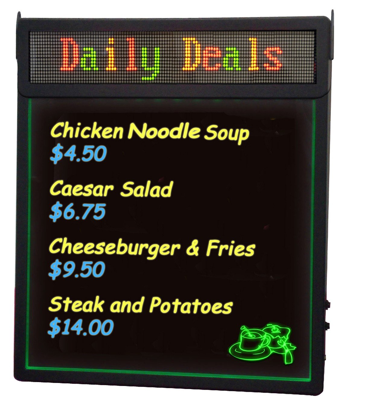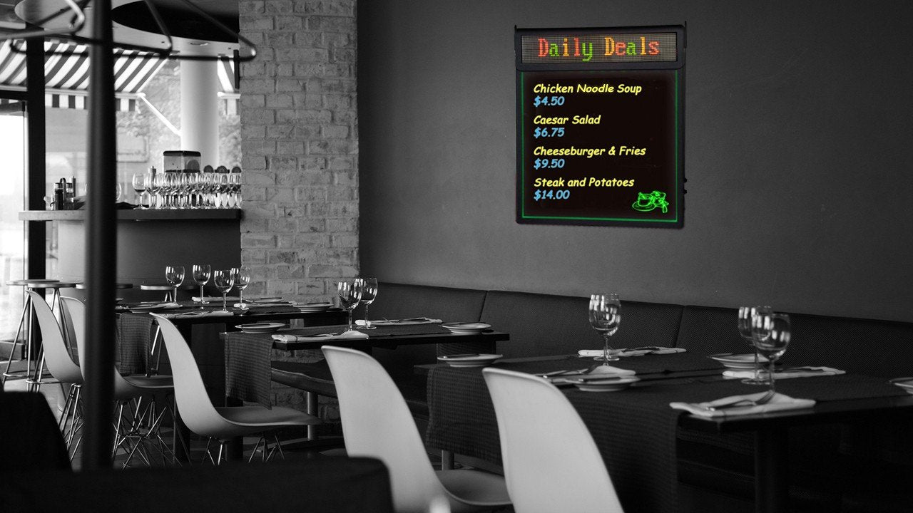 - Use the rewriteable sign board to help promote a key selling messages