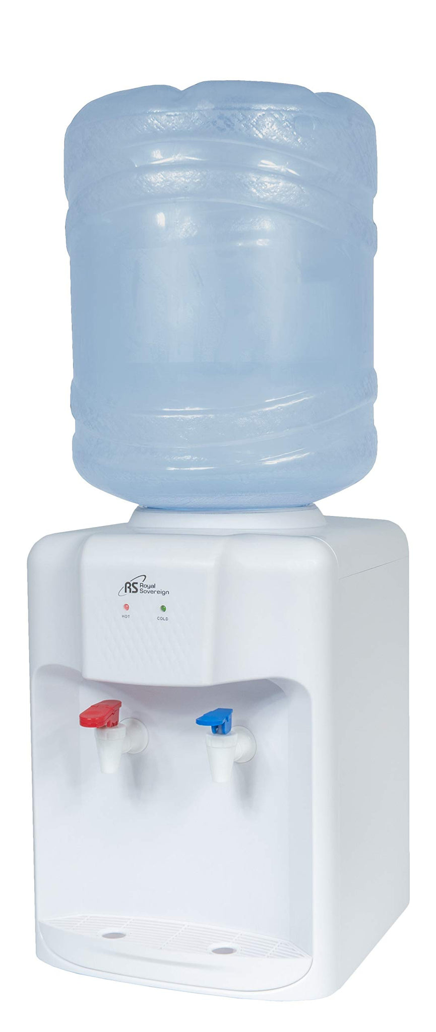Details: Countertop water dispenser features a compact design for convenient use in smaller office breakrooms, refreshment stations or remote worksites. To conserve energy, hot water can be turned off separately when it's not needed. Stainless steel water tanks help keep your water tasting fresh. Color-coded nozzles with childproof a safety lock on the hot water dispenser to prevent injury. Water dispenser is designed for standard water bottles sized 3 gallon and 5 gallon. Manufacturer: Royal Sovereign International. Manufacturer Part Number: RWD-200W. Brand Name: Royal Sovereign. Product Model: RWD-200W. Product Name: Countertop Water Dispenser. Product Type: Water Dispenser. [Technical Information] Dispenser Type: Hot/Cold. Bottle Size Support: 5 gal. Features: Removable Drip Tray. Child Lock. Dishwasher Safe. Storage Cabinet. [Power Description] Input Voltage: 120 V AC. [Controls/Indicators] Status Indicators: LED. [Physical Characteristics] Color: White. Gray. Material: Stainless Steel Tank. Form Factor: Countertop. Height: 15.6". Width: 10.8". Depth: 11.7". Weight (Approximate): 6.20 lb. [Warranty] Limited Warranty: 1 Year.