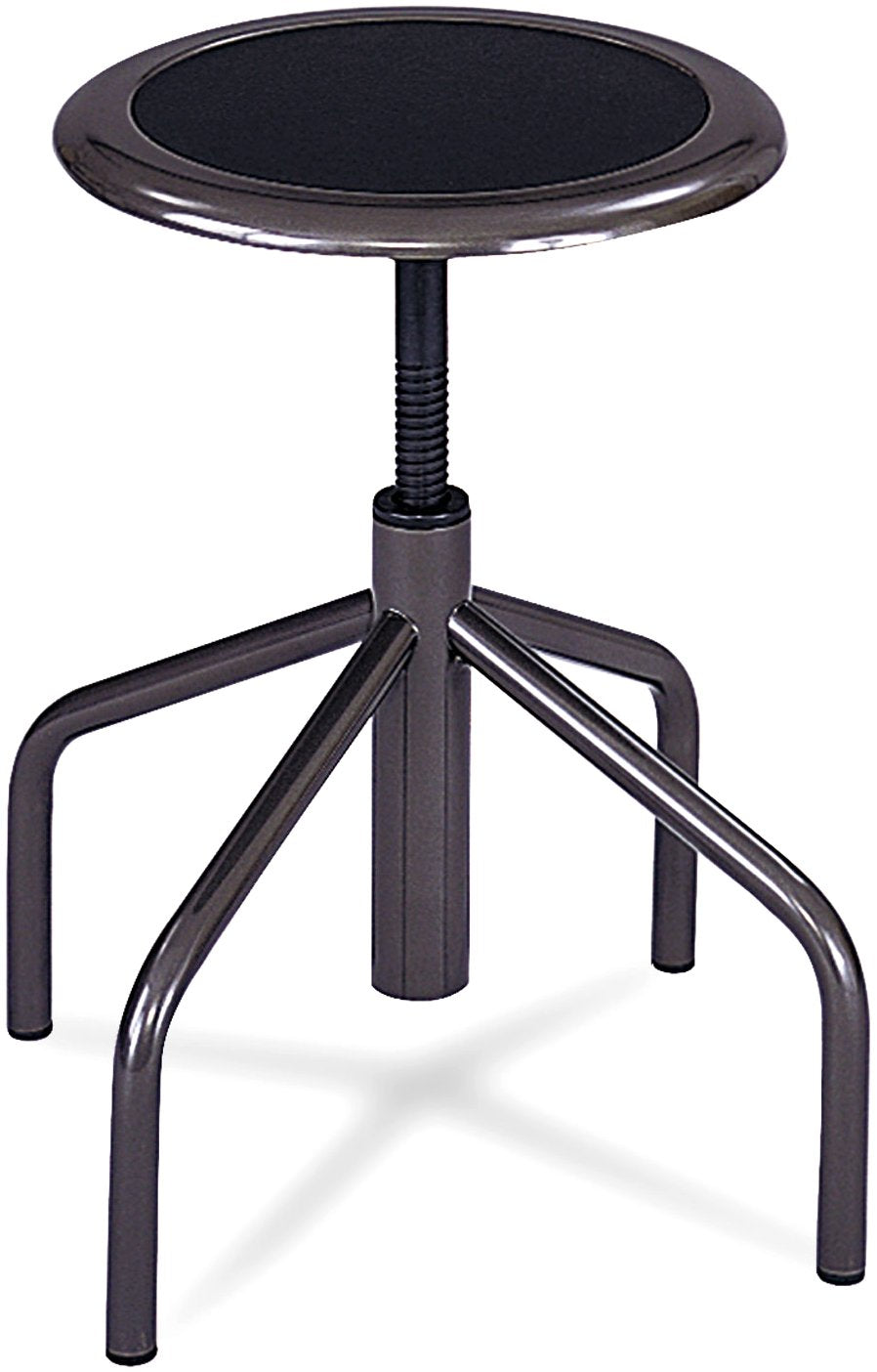 - Steel screw lift manually adjusts the recycled leather padded seat.
