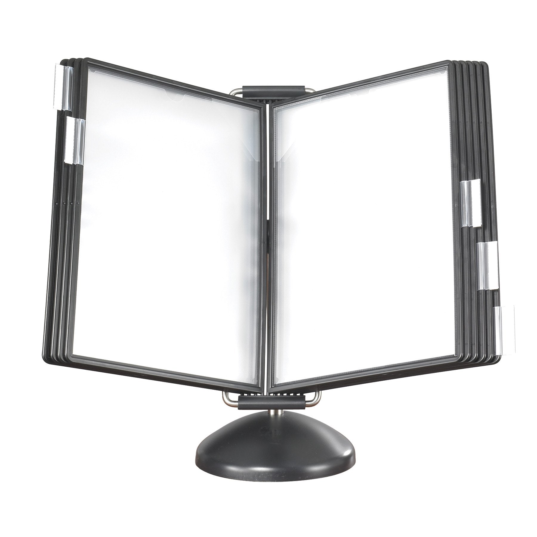 - 10 anti-glare pockets with black frames feature two-sided opening for easy document loading