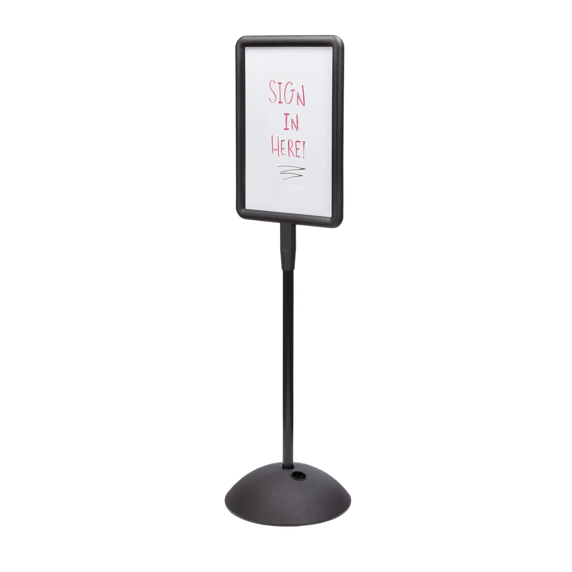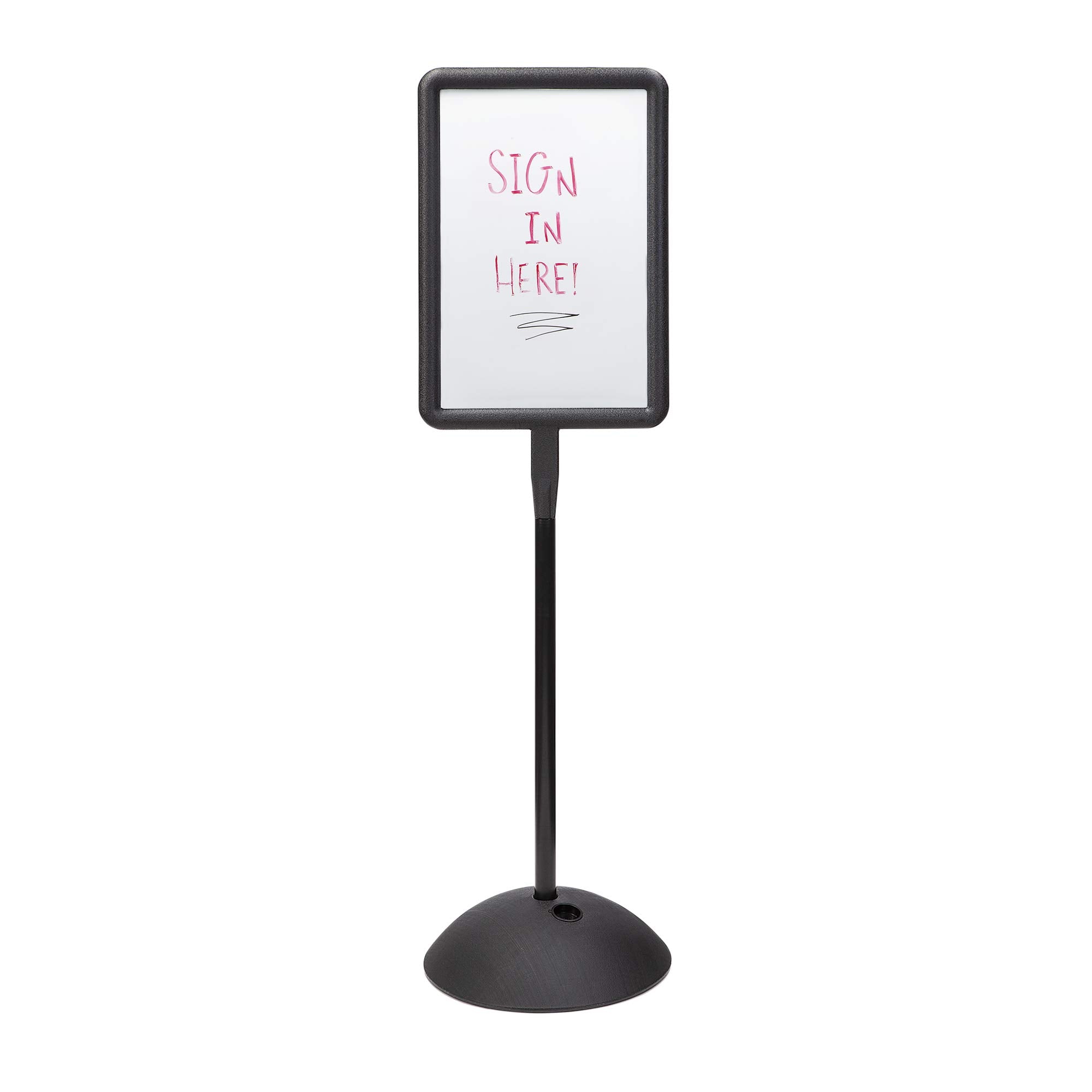 - Black frame with white magnetic porcelain on steel, dry erase surface.