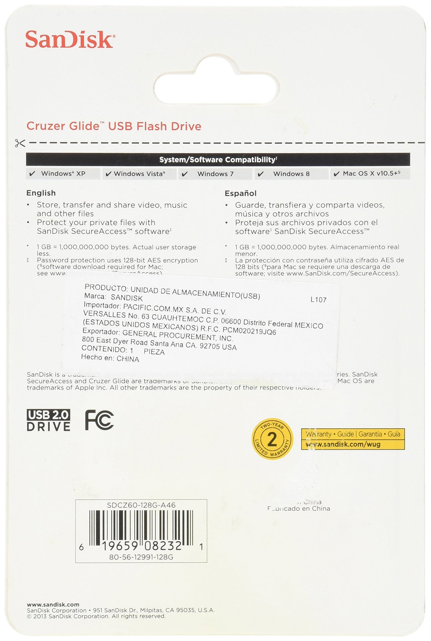 SANDISK SDCZ60-128G-A46 Cruzer Glide USB Flash Drive, 128 GB, Black/Red