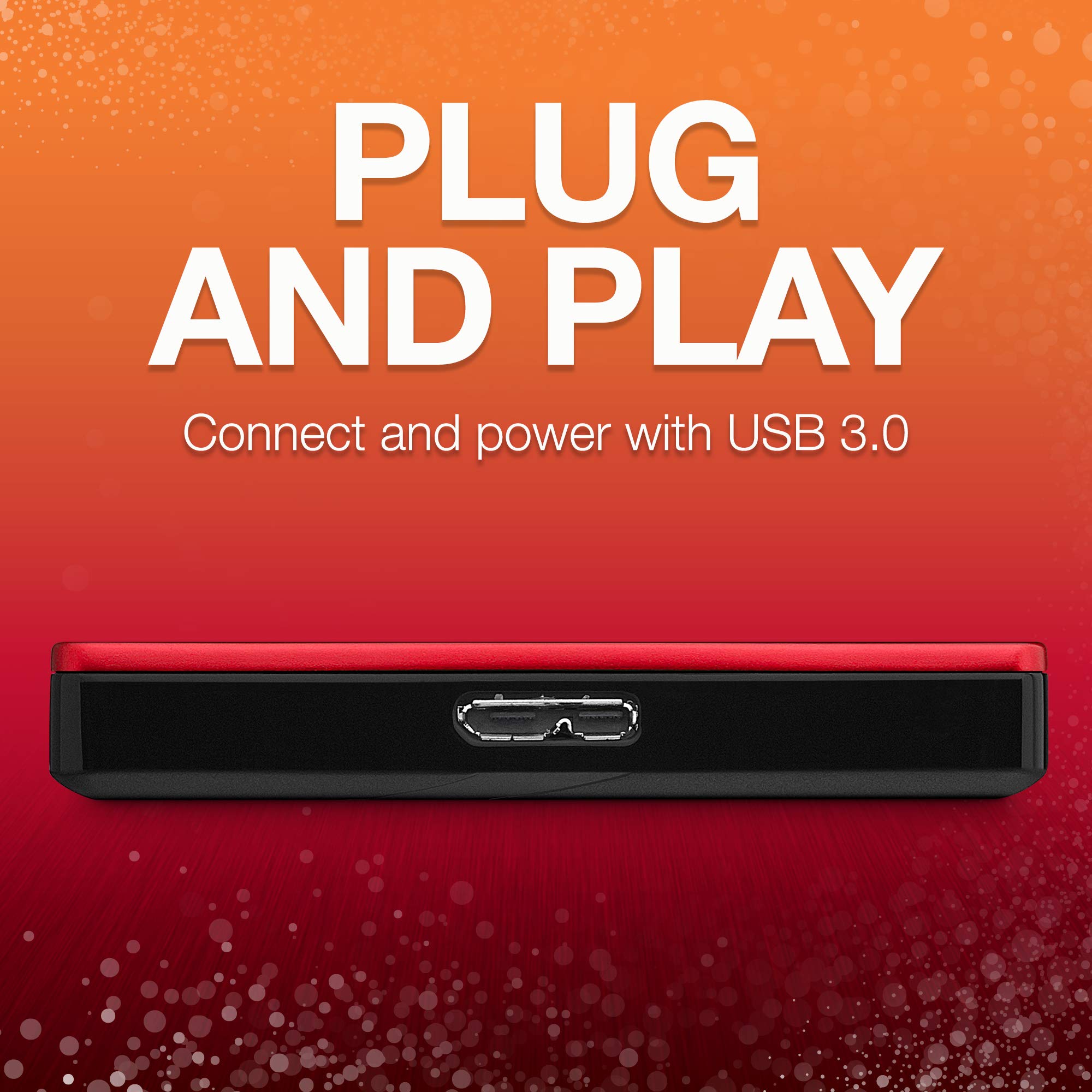 Details: Seagate Backup Plus Slim 2TB Portable External Hard Drive with Mobile Device Backup USB 3.0 STDR2000103 - Red