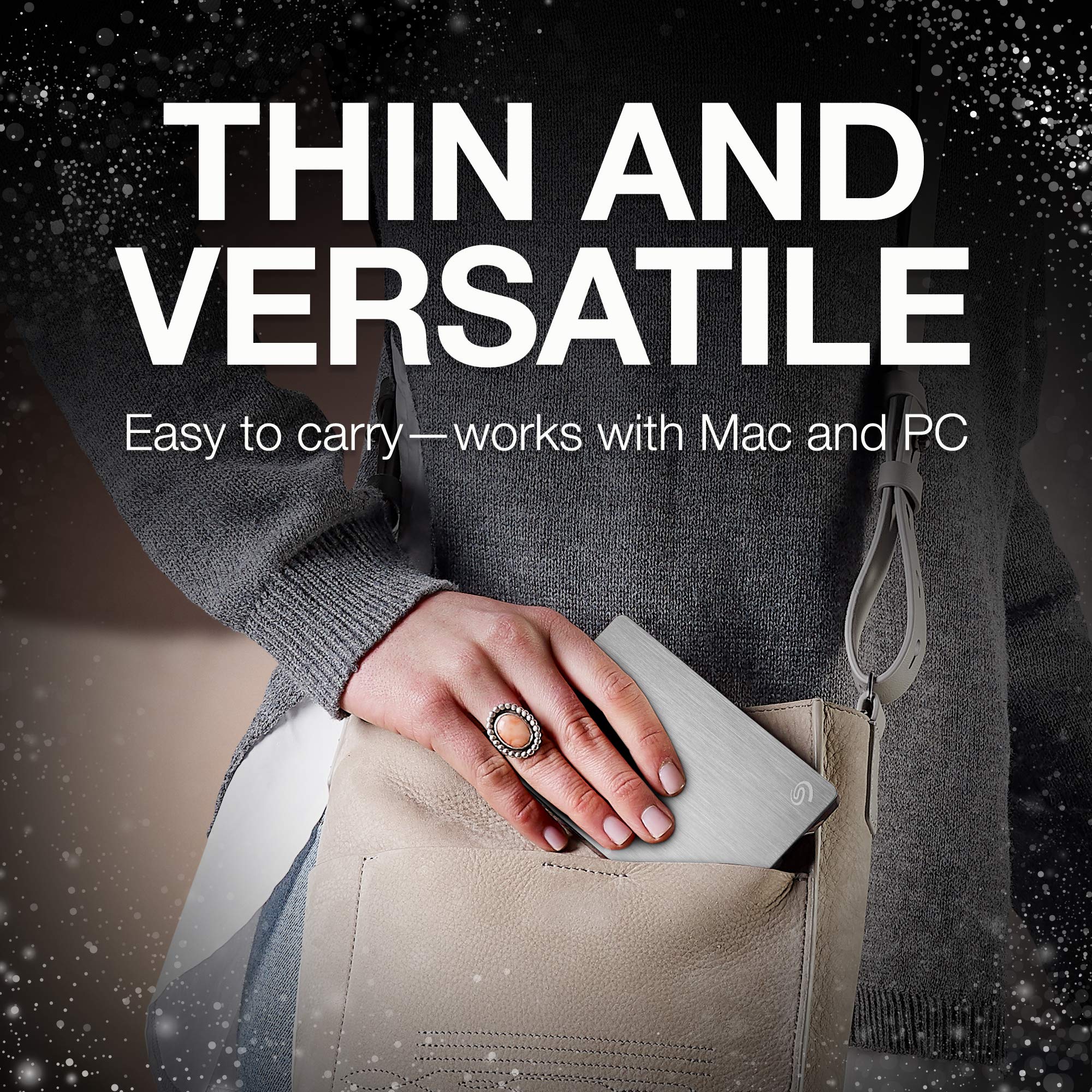 - Store and access 2tb of photos and files on the go with backup plus slim, a portable external hard drive
