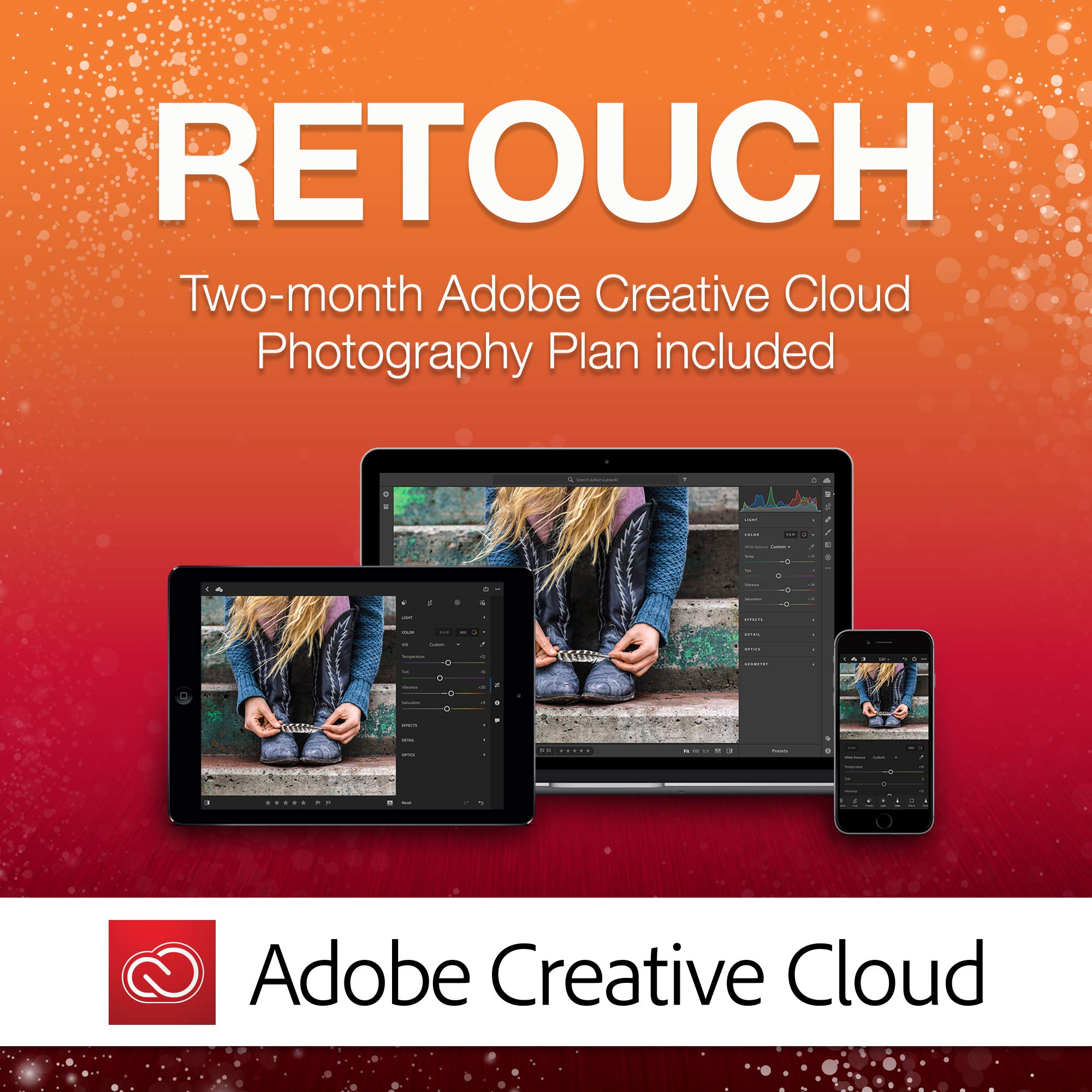 • Take advantage of a complimentary two-month membership to the Adobe Creative Cloud Photography Plan for access to awesome photo and video editing apps