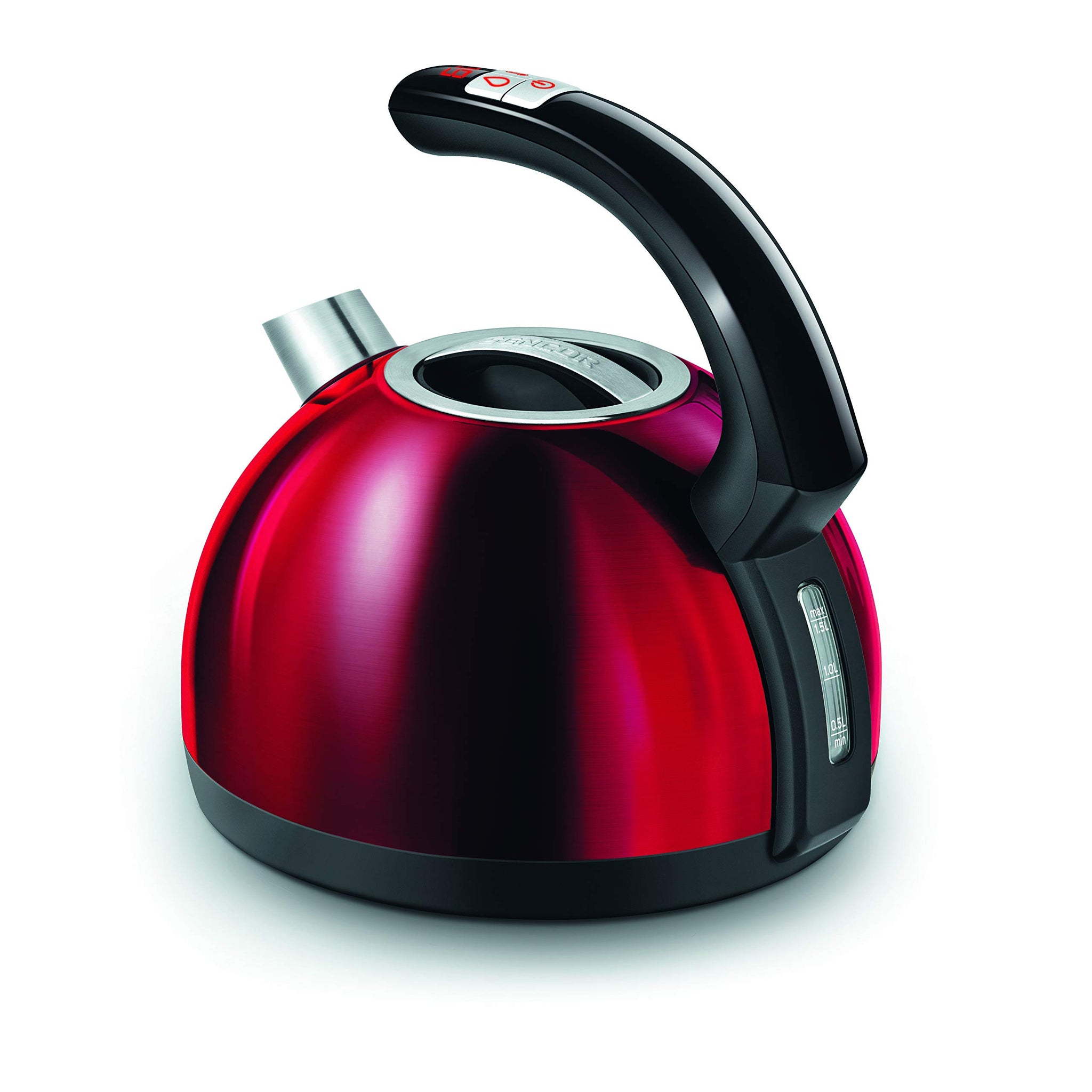 - STAINLESS STEEL DESIGN: The 1. 5 Liter stainless steel kettle features a metallic finish with a modern open handle design