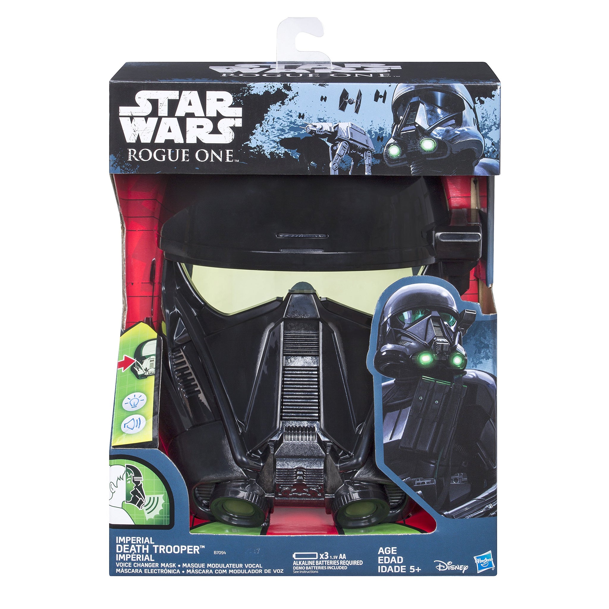 Details: Jedi Knights, Sith Lords, Stormtroopers, X-Wings, Star Destroyers, AT-AT Walkers, droids, Wookiees, Rebel heroes, and more! Discover the exciting stories of good versus evil in a galaxy far, far away with the Imperial Death Trooper Voice Changer Mask from Star Wars: Rogue One! Battle the Rebels as an Imperial Death Trooper with this electronic mask that transforms your voice into the elite soldiers of Imperial Intelligence when you speak! Imagine what it’s like to enforce the highest orders of the Empire behind this dark-gleamed electronic mask that’s a movie-accurate reproduction of these ominous soldiers’ armor! Anonymous and brutal, Death Troopers serve as bodyguards and enforcers for Director Krennic, a highly-placed and cunning officer within the Advanced Weapons Research division of the Empire. Put yourself straight into the middle of the action and defend the Empire with this awesome Imperial Death Trooper Voice Changer Mask from Star Wars: Rogue One, and re-create all of the moments from the Star Wars saga with this and other role play toys from Hasbro Star Wars. WARNING: CHOKING HAZARD – Small parts may be generated. Not for children under 3 years, Ages 5 and up. x3 1.5V AA Batteries required Demo batteries included.