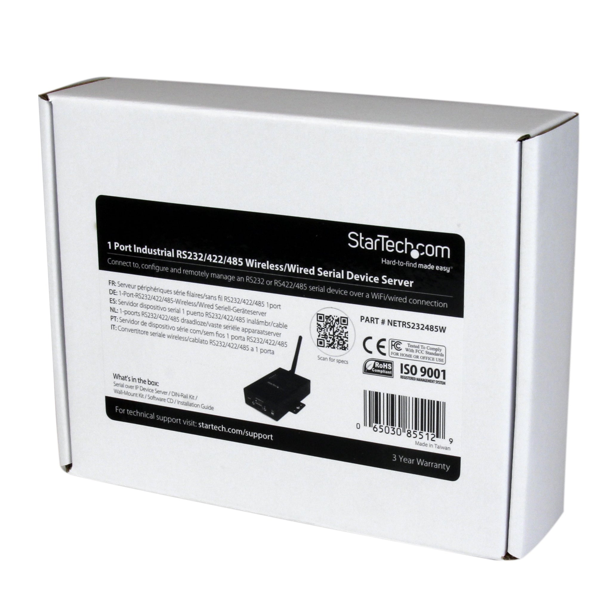 StarTech.com 1 Port Industrial RS-232/422 / 485 Serial to IP Ethernet Wireless Device Server with Redundant Power - Serial Device Server (NETRS232485W)