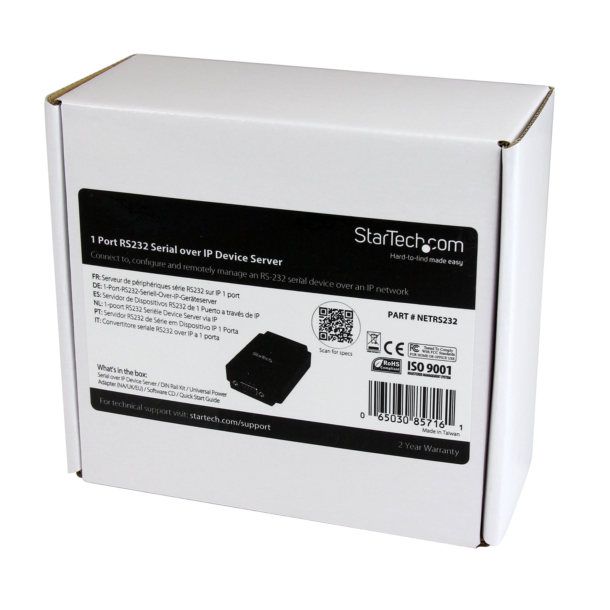StarTech.com 1 Port RS-232 Serial to IP Ethernet Device Server - DIN Rail Mountable - Serial Device Server - Serial Over IP Device Server (NETRS232)
