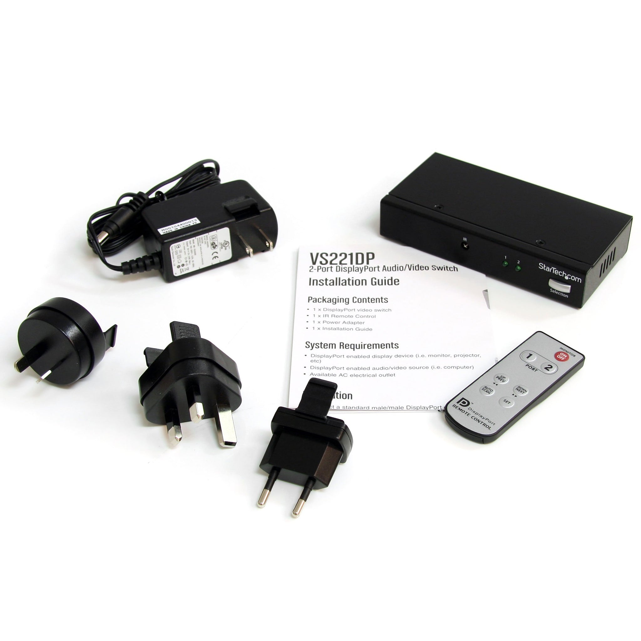 StarTech.com 2 Port DisplayPort Video Switch with Audio & IR Remote Control (VS221DP)