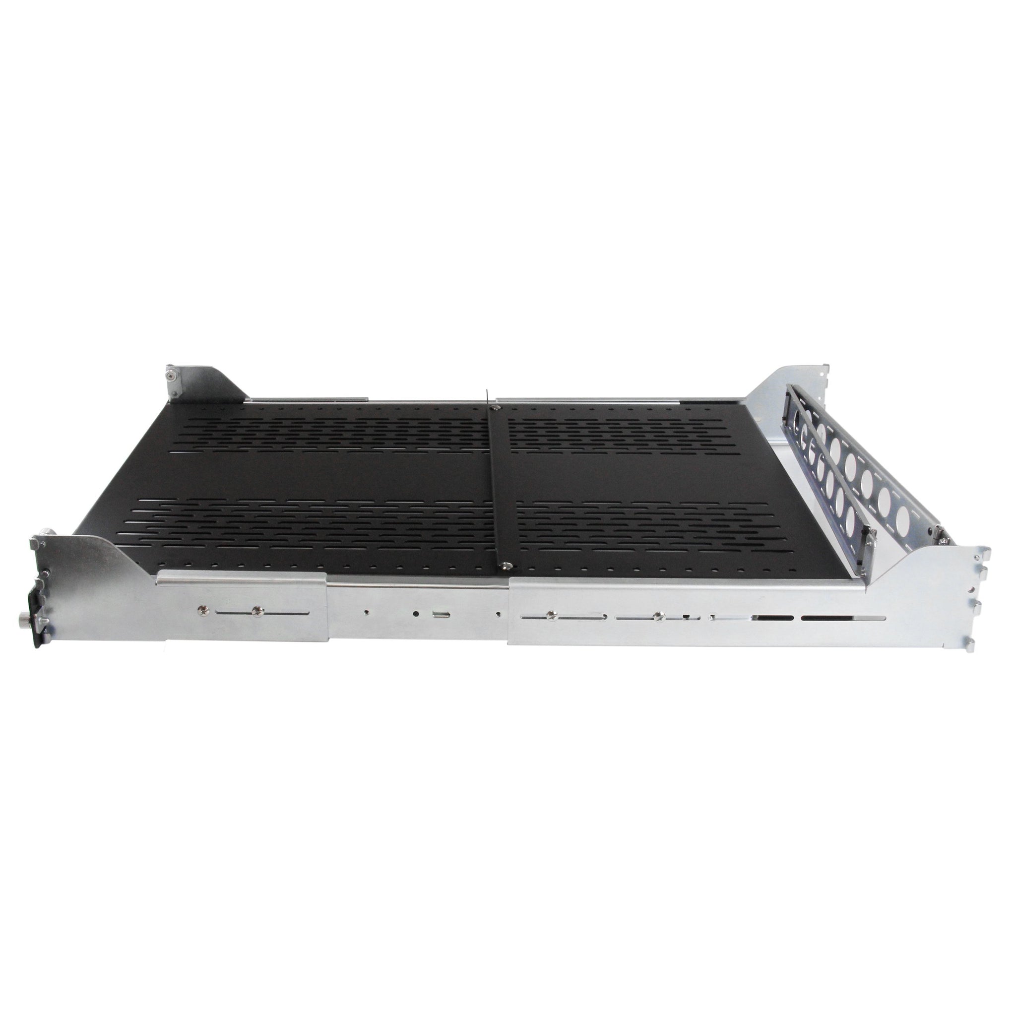 - CABLE MANAGEMENT: This sliding cabinet shelf includes integrated cable management & is vented to ensure proper airflow--ideal for adding additional sliding storage space for your IT / AV accessories.