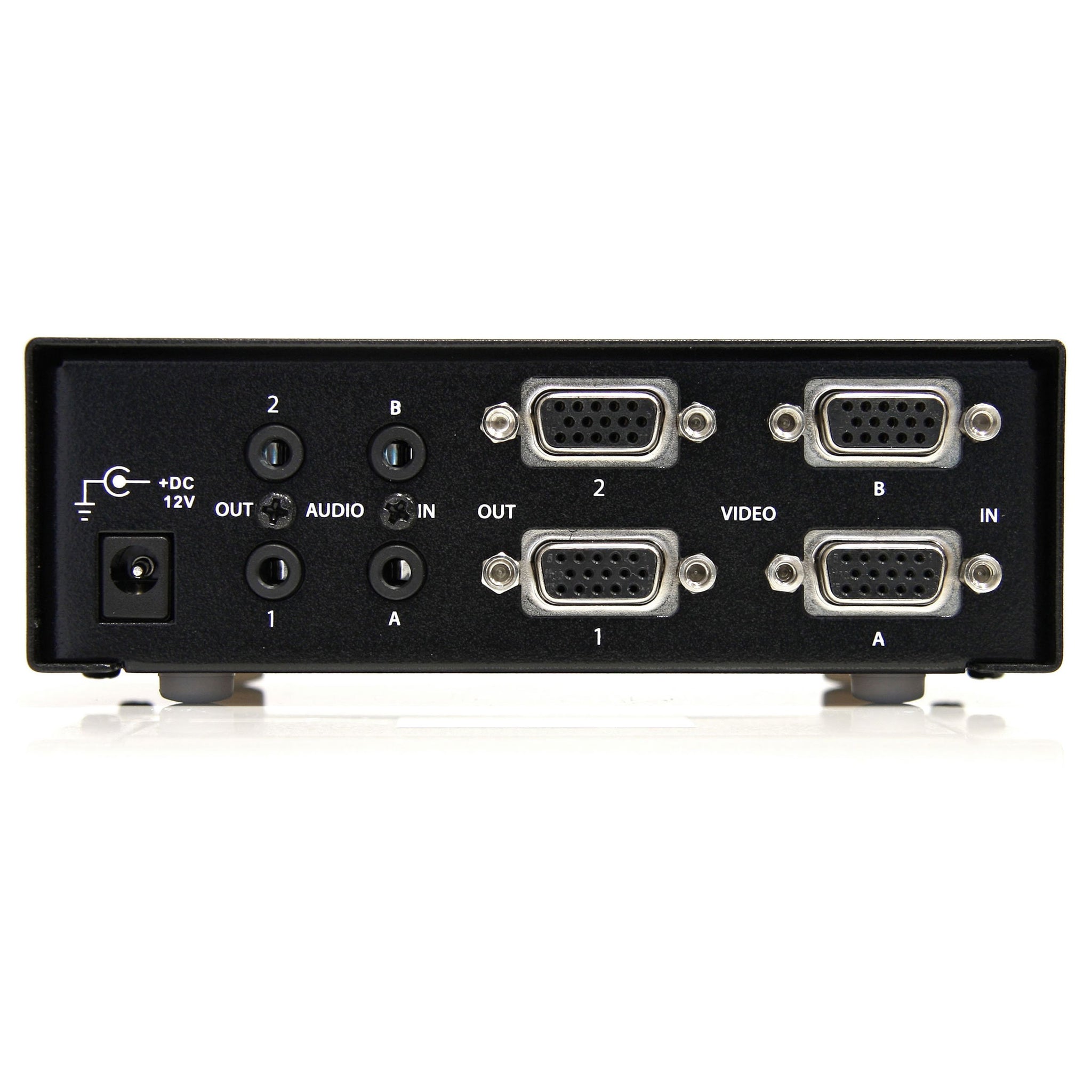 The ST222MXA 2x2 VGA Matrix Switcher/Splitter allows you to share 2 distinct VGA inputs (as well as a corresponding audio source), between 2 independent displays or projectors.