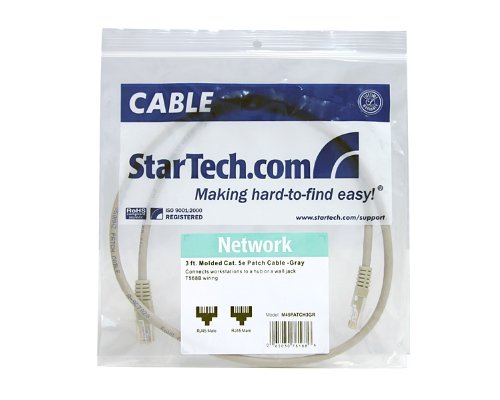 StarTech.com 3 ft Cat5e Patch Cable with Molded RJ45 Connectors - Gray - Cat5e Ethernet Patch Cable - 3ft UTP Cat 5e Patch Cord (M45PATCH3GR)