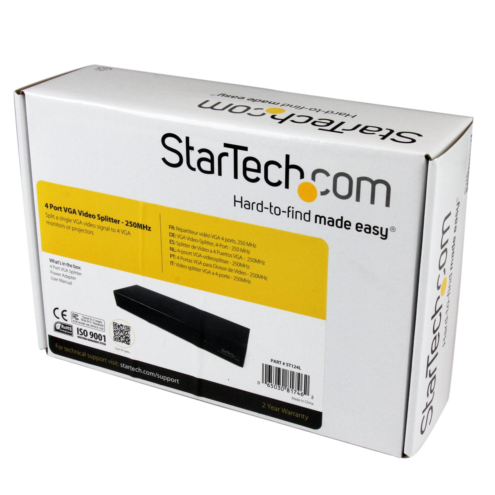 StarTech.com 4-Port VGA Video Splitter - 1x4 VGA Distribution Amplifier - VGA Splitter - 250 Mhz (ST124L)