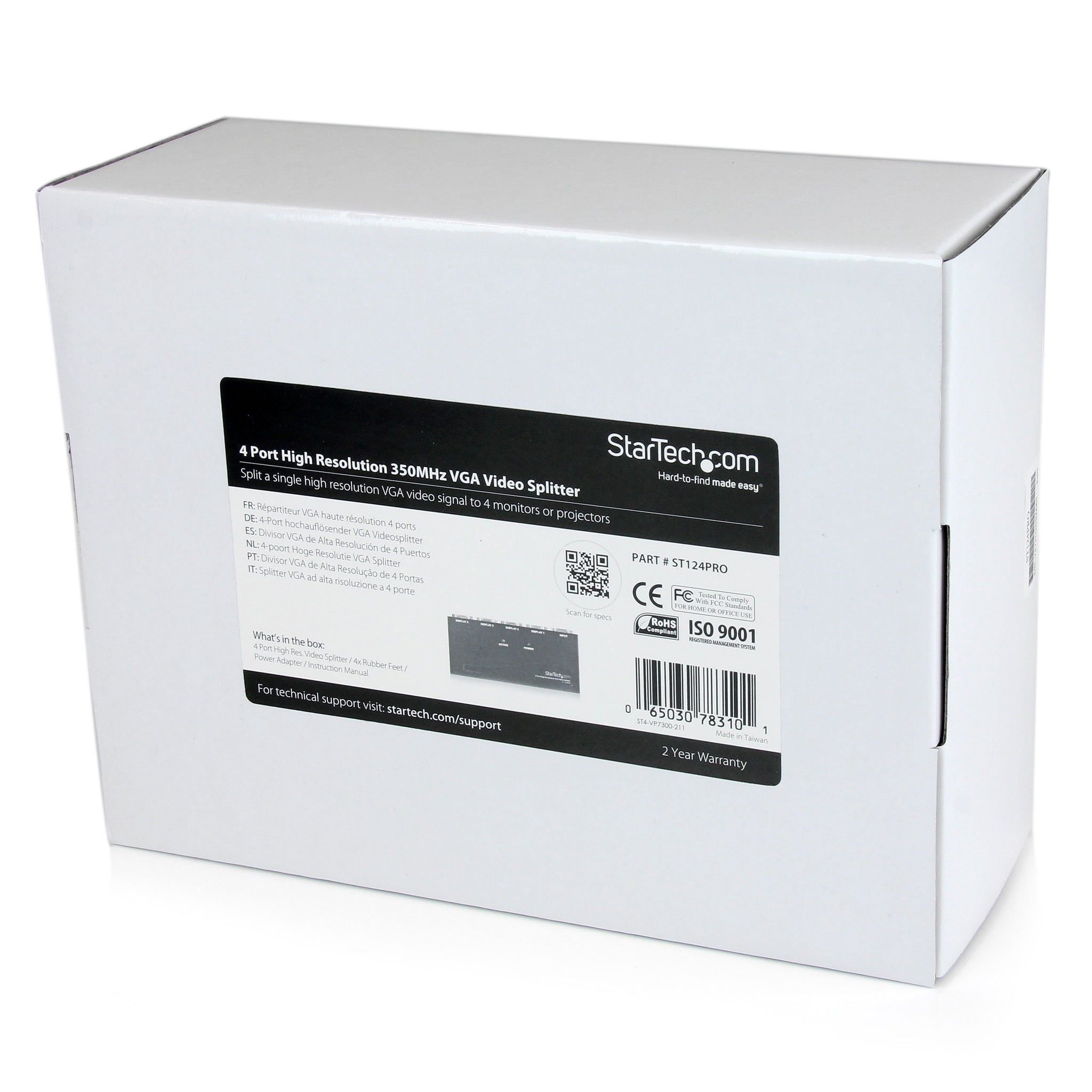 StarTech.com 4-Port VGA Video Splitter - 300 MHz- VGA Splitter - 4 port - 2048x1536 @ 80Hz (ST124PRO)