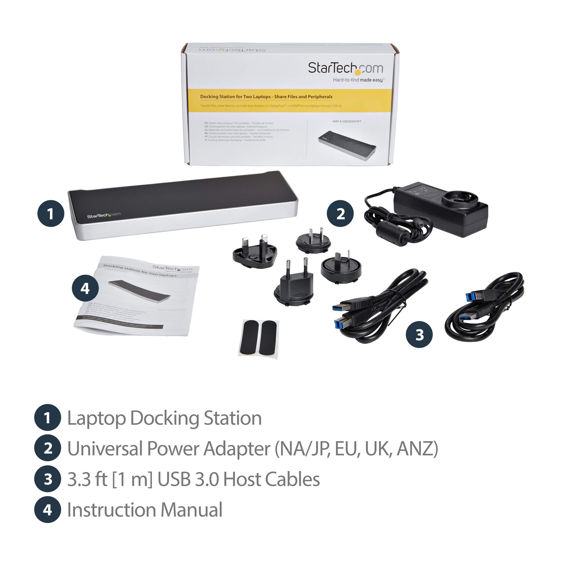 StarTech.com Dual Monitor KVM Docking Station - for Two Laptops - 4K - File Transfer - Universal Laptop Docking Station (USB3DDOCKFT)