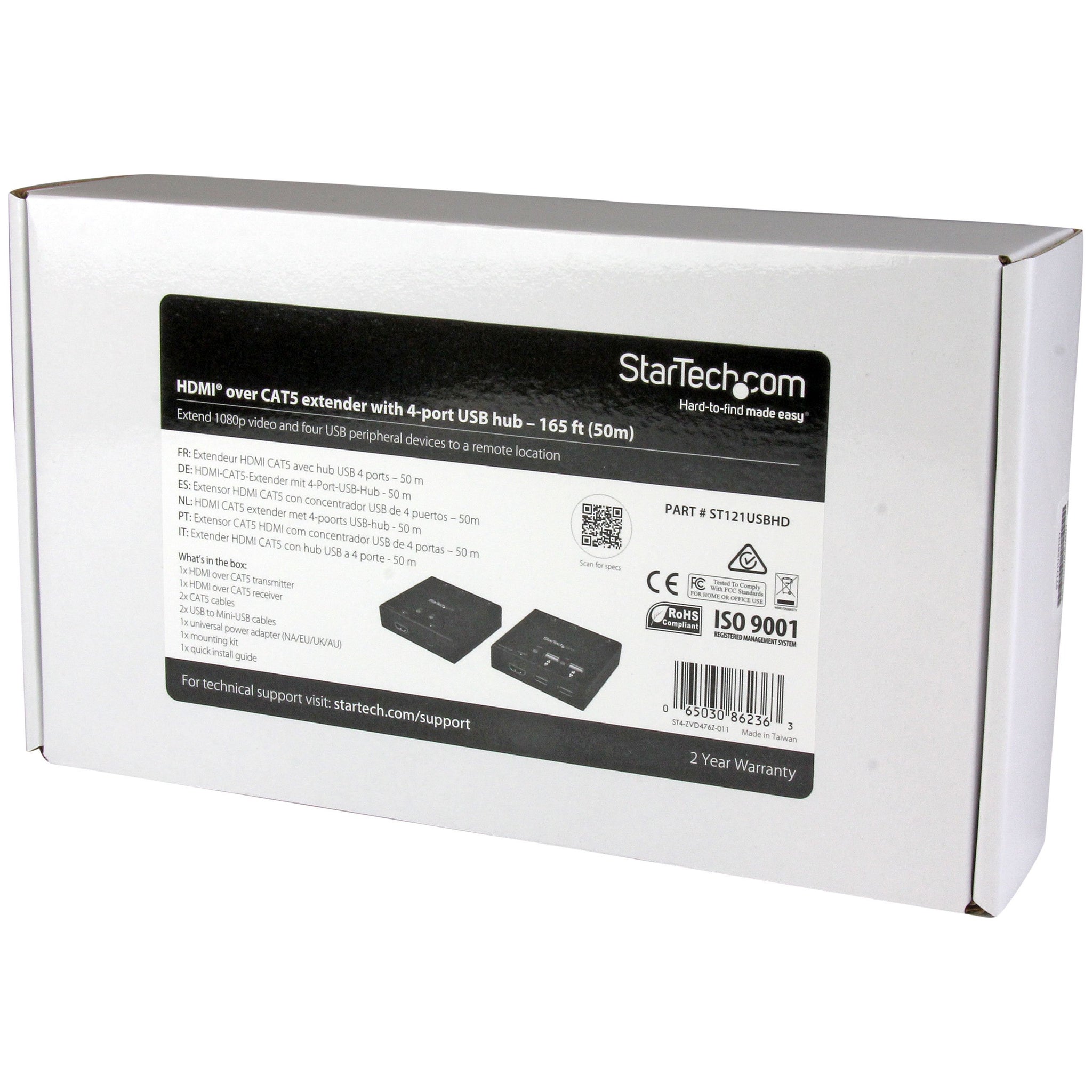 StarTech.com HDMI Over CAT6 Extender with 4-Port USB Hub - Remote HDMI Over CAT5 or CAT6-165 ft (50m) - 1080p (ST121USBHD)