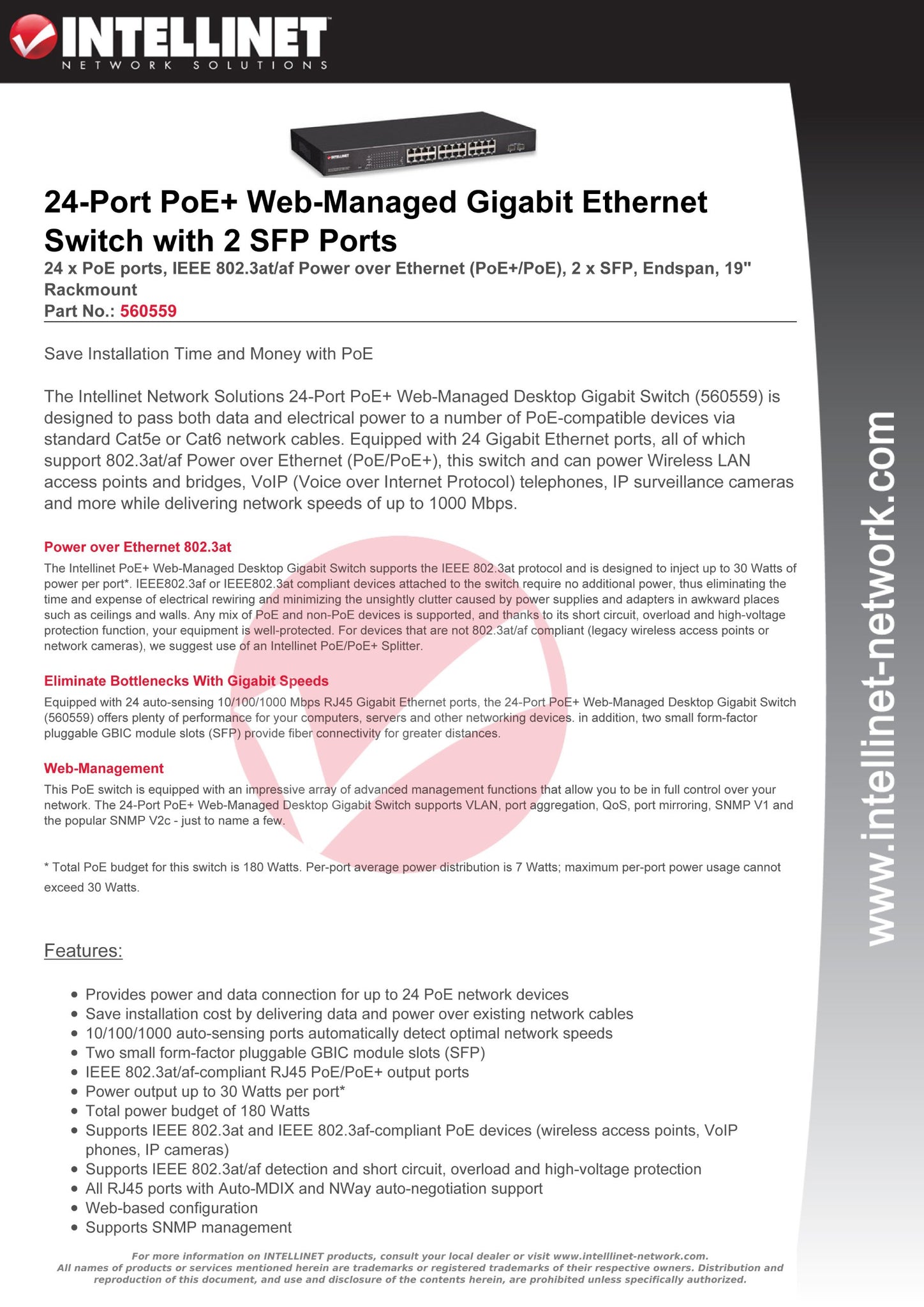 Switch 24-Port/Poe Mngd Gbt ETH 2 Sfp Pt