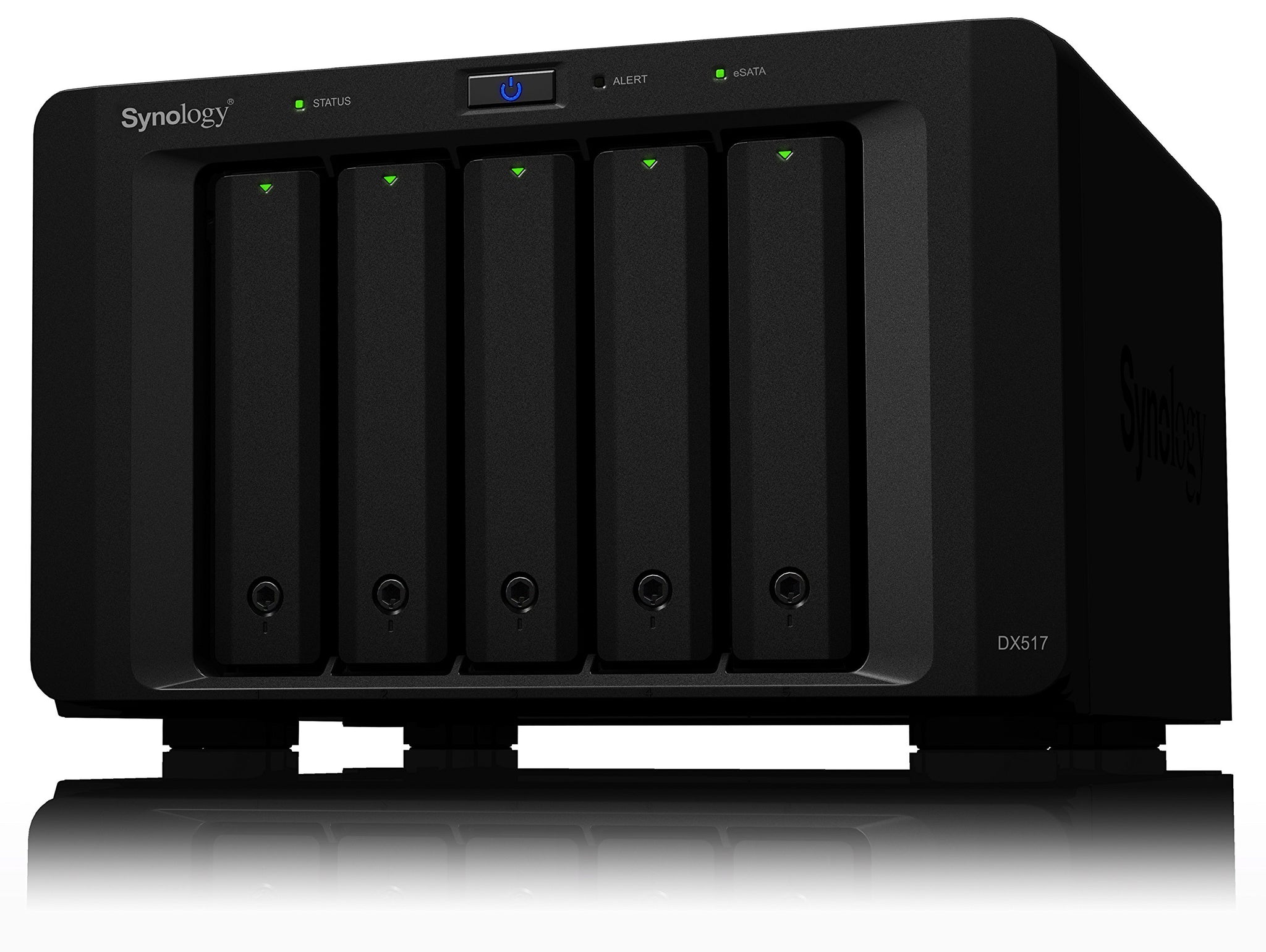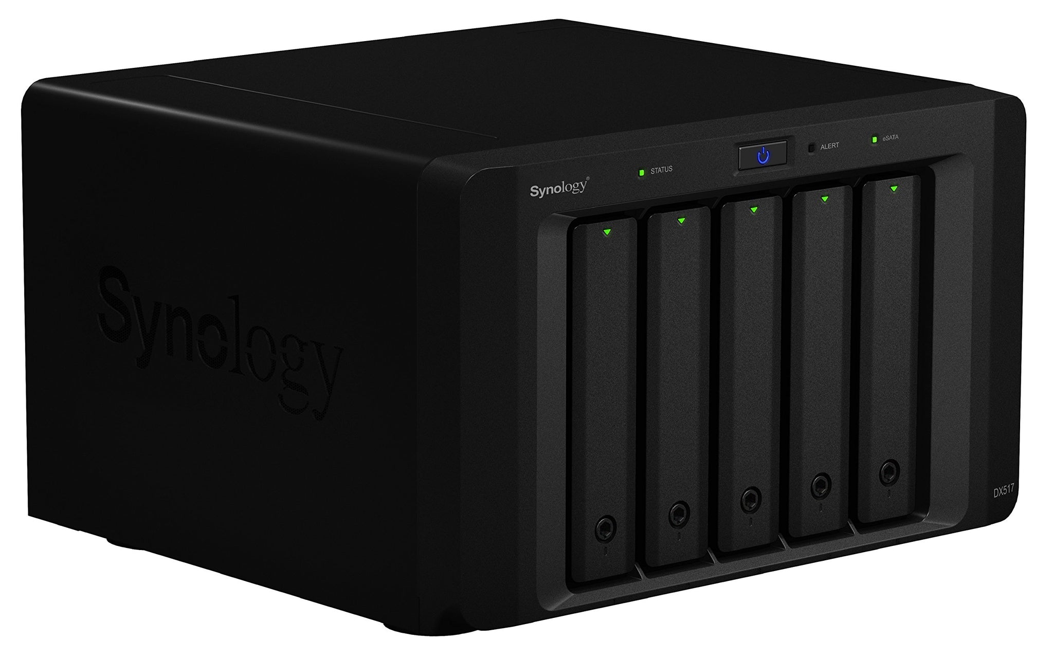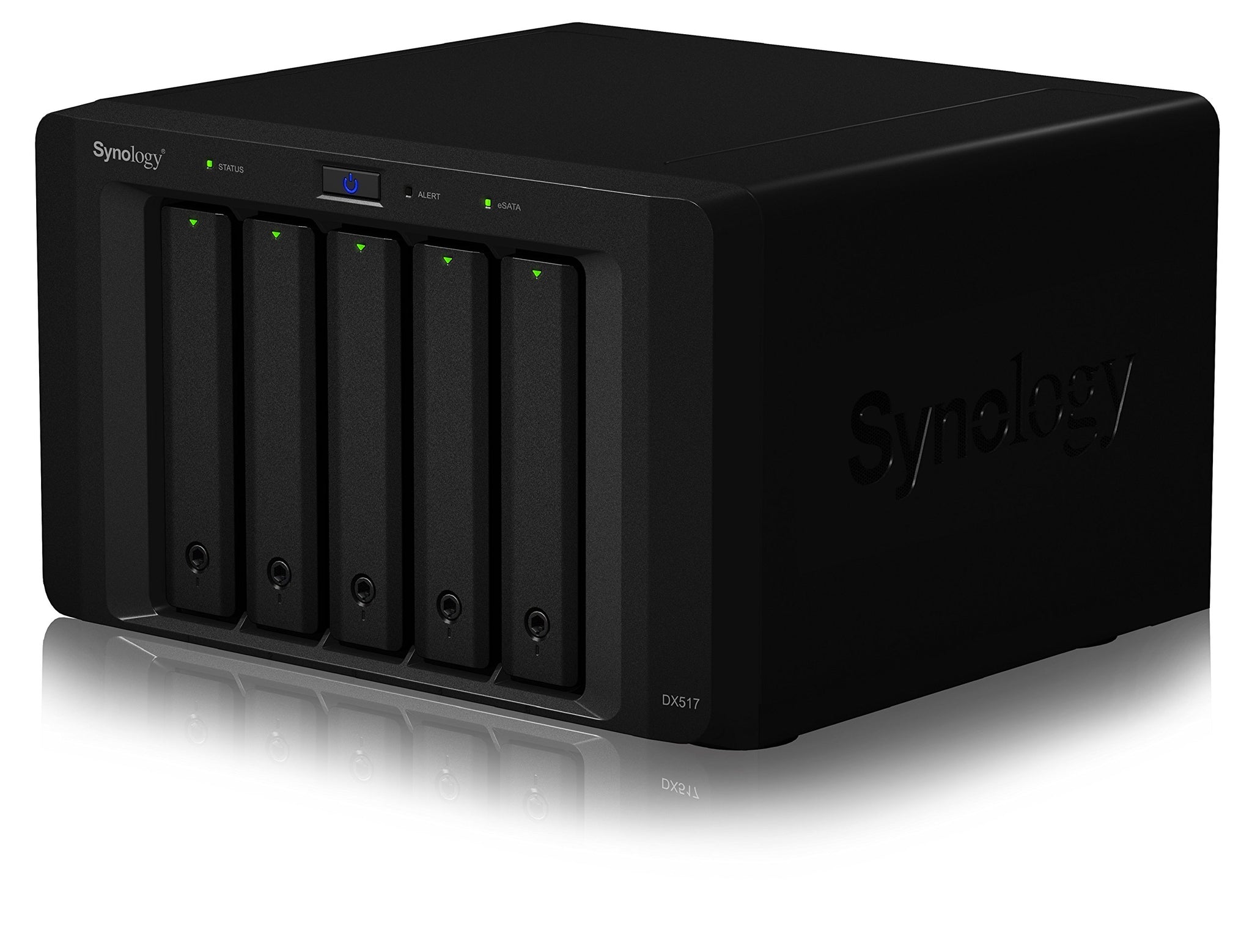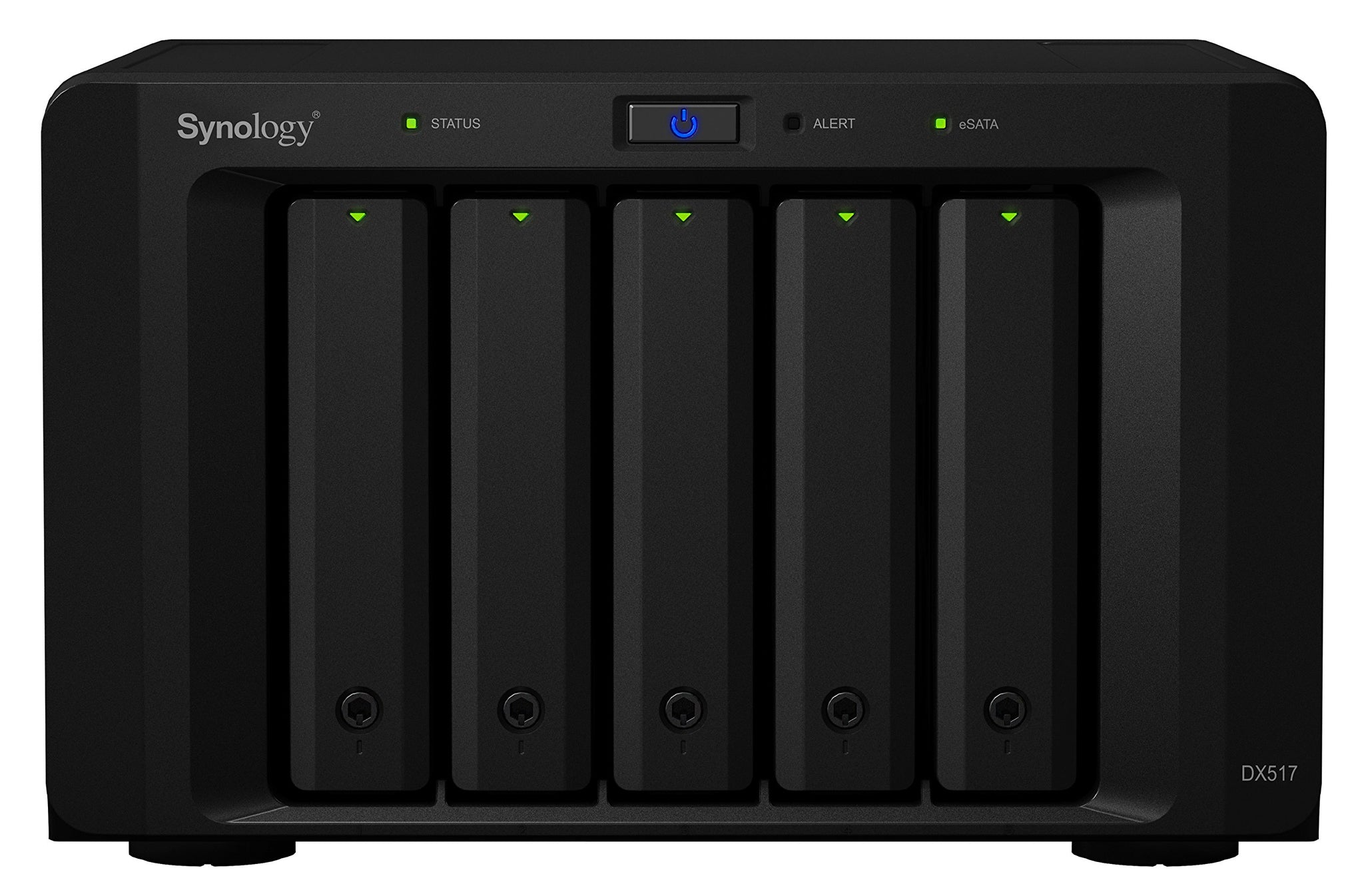 Details: Synology DX517 offers simple storage capacity expansion solution for your Disk Station through its intuitive plug-n-use design. DX517 allows you to instantly scale up to 5 additional hard drives, so that you can expand RAID volume online or deploy the drives as a dedicated local backup destination for your Disk station. Synology DX517 is backed by Synology's 3-year limited warranty.