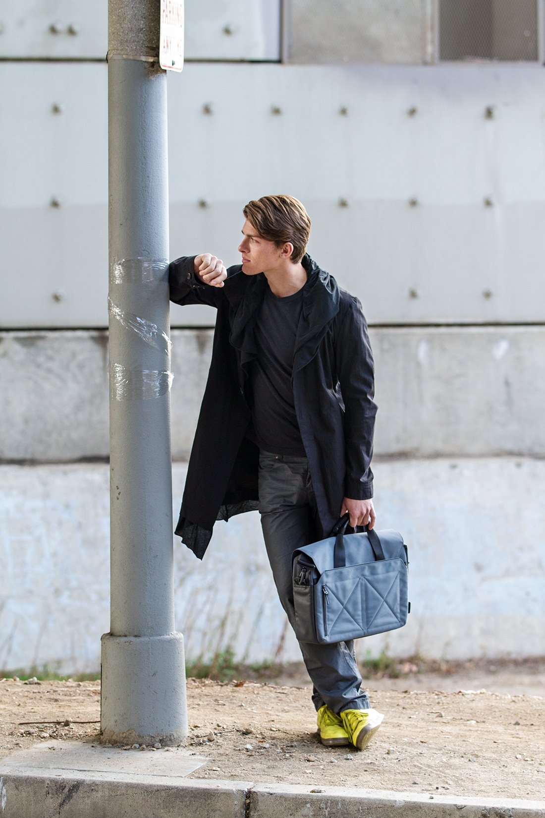 - Padded shoulder straps and soft-wrapped handles with snap buttons