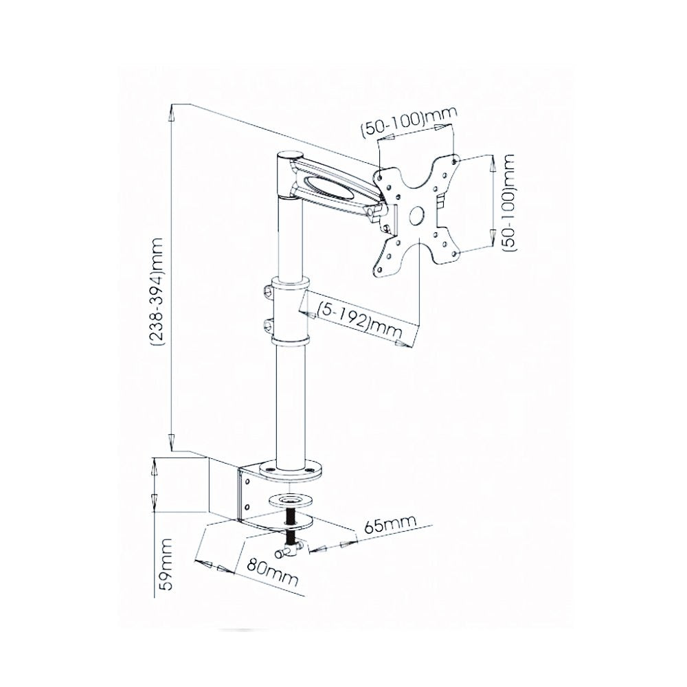 - Height adjustable from 238mm to 394mm ; Vertical tilt +/-12° and horizontal tilt: 360°