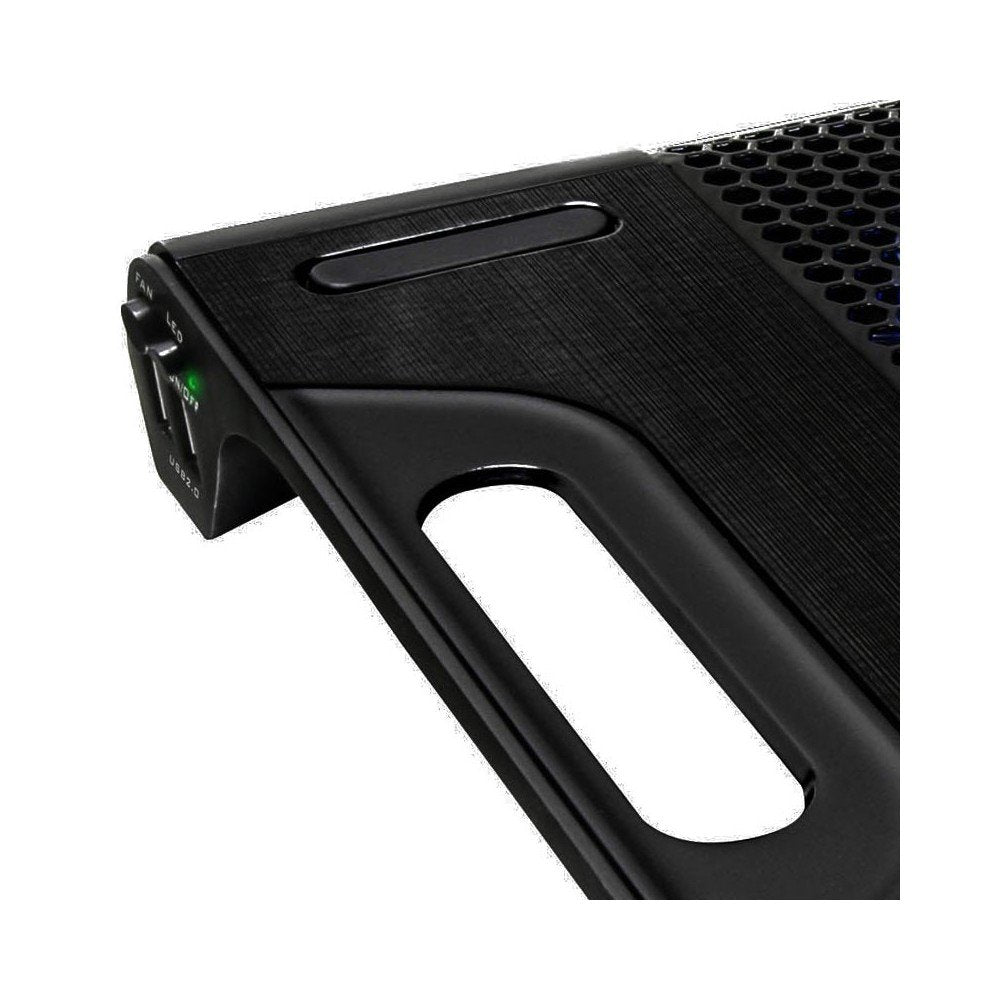 - Oversized 230mm ultra-quiet fan with blue LEDs removes heat from the notebook easily and effectively