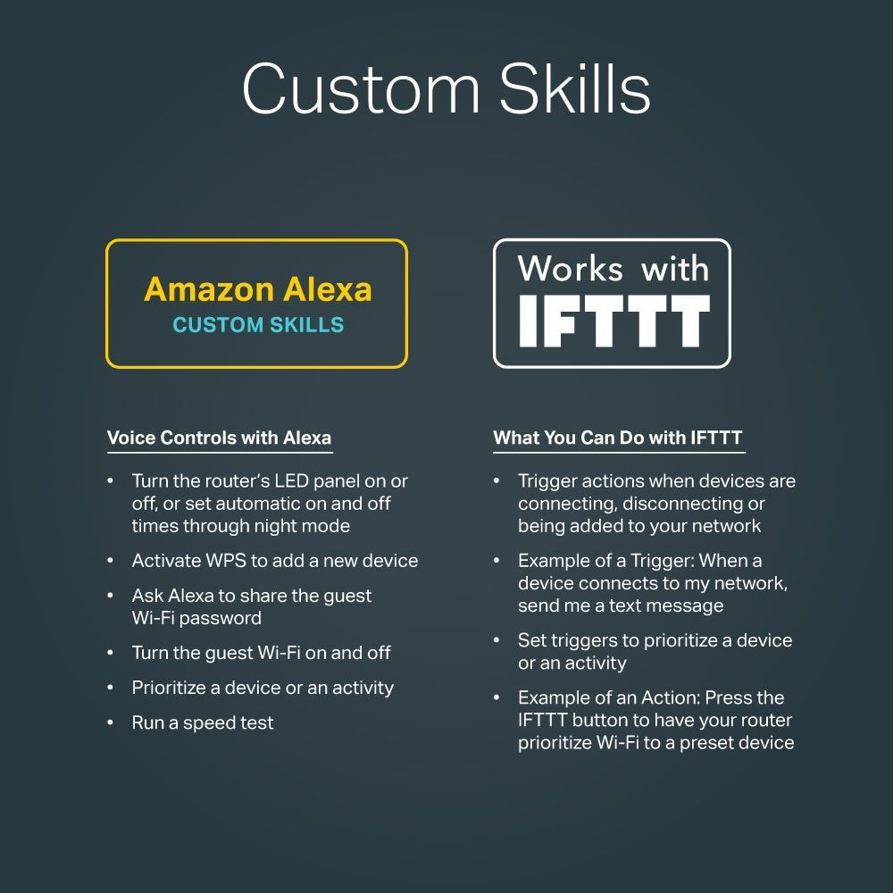 - SMART ROUTER Works with Amazon Alexa and IFTTT. LEADING SUPPORT Industry leading 2 year warranty and unlimited 24/7 technical support