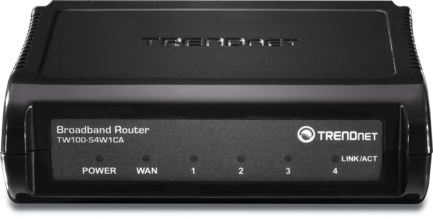 The TW100-S4W1CA 4-Port Broadband Router provides the easiest and most secure way to share your high-speed Cable/xDSL Internet connection. It has four 10/100Mbps half/full duplex switch ports that directly connect to workstations or uplink to another hub or switch. The TW100-S4W1CA also functions as a firewall for your PC, protecting your computer from hackers. It allows up to 253 users to access the Internet using a single ISP account. By sharing just one TW100-S4W1CA, one IP address, and one Cable/xDSL modem, dozens of network users can surf the Internet simultaneously. TRENDnet's 4-port Broadband Router is a feature-rich product that provides cost-effective functionality and an easy configuration.