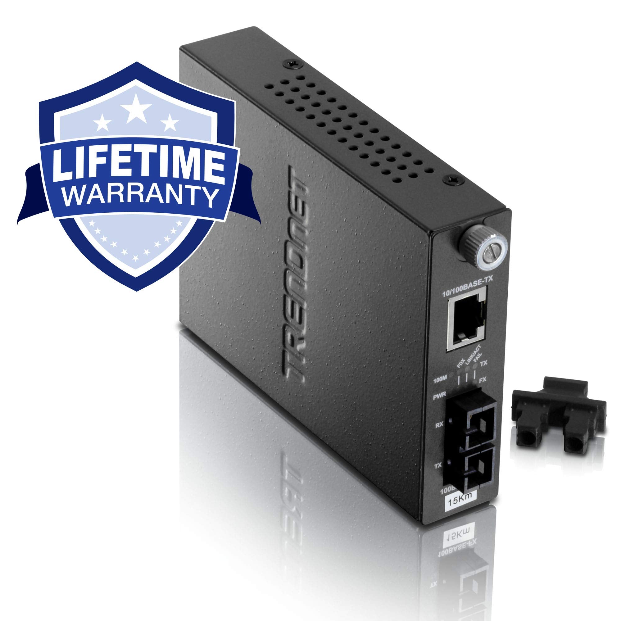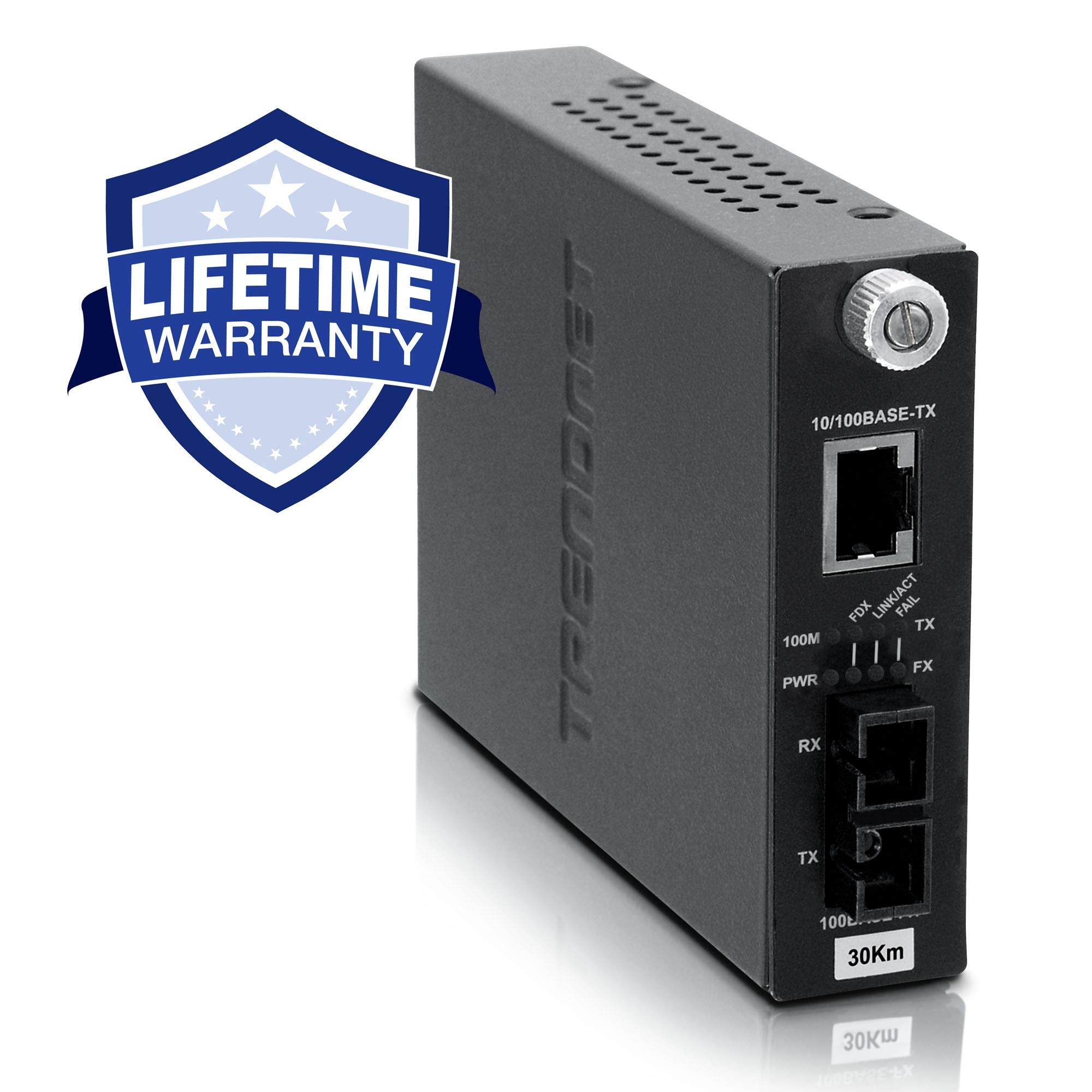 TRENDnet 100Base-TX to 100Base-FX Single Mode SC Fiber Converter (Black)