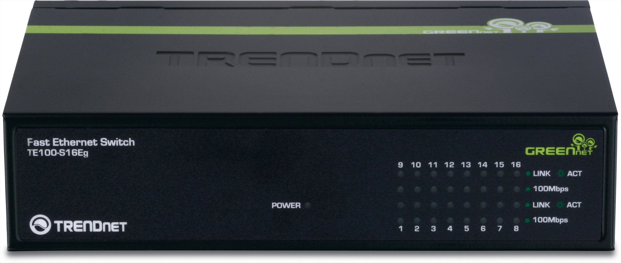 TRENDnet 16-Port Unmanaged 10/100 Mbps GREENnet Ethernet Desktop Metal Housing Switch, TE100-S16EG