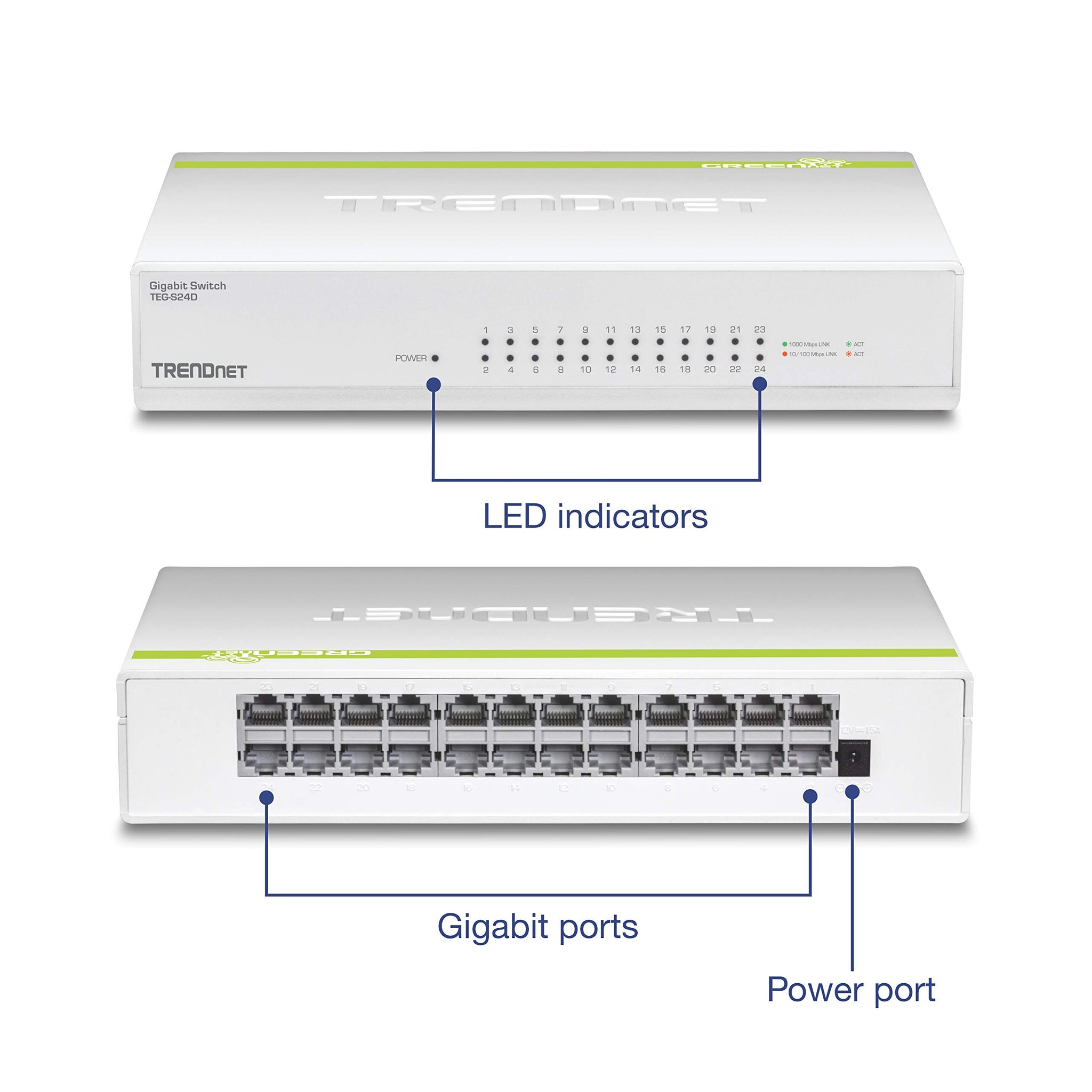 TRENDnet 24-Port Gigabit GREENnet Switch, QoS, 48 Gbps Switching Fabric, Fanless, Plug & Play, Half & Full Duplex, TEG-S24D