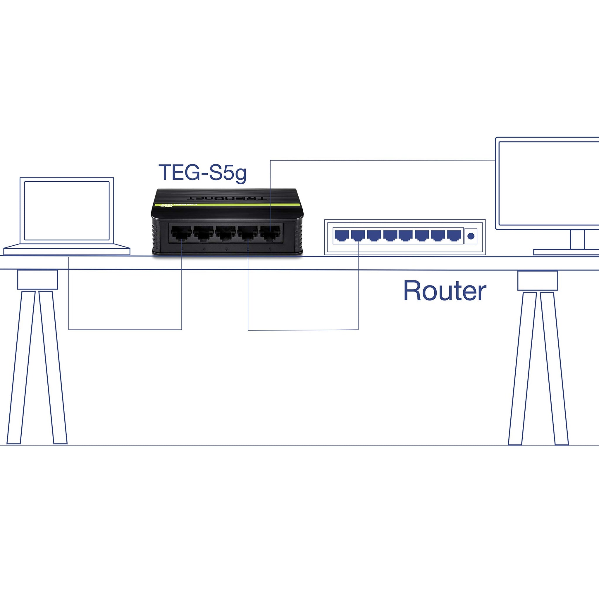 TRENDnet 5-Port Unmanaged Gigabit GREENnet Desktop Plastic Housing Switch, Plug & Play, 5 x Gigabit Ports, 10 Gbps, TEG-S5g