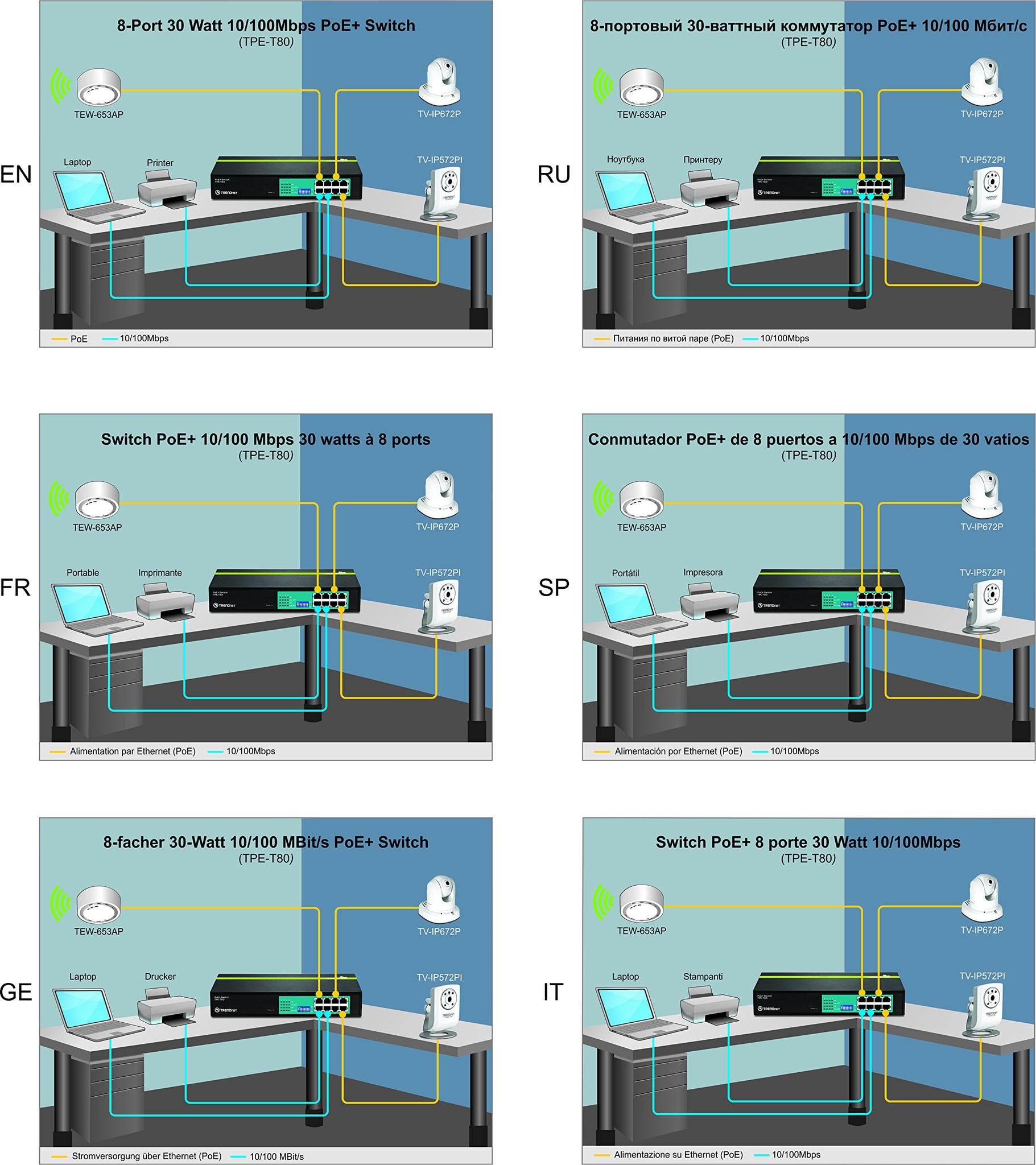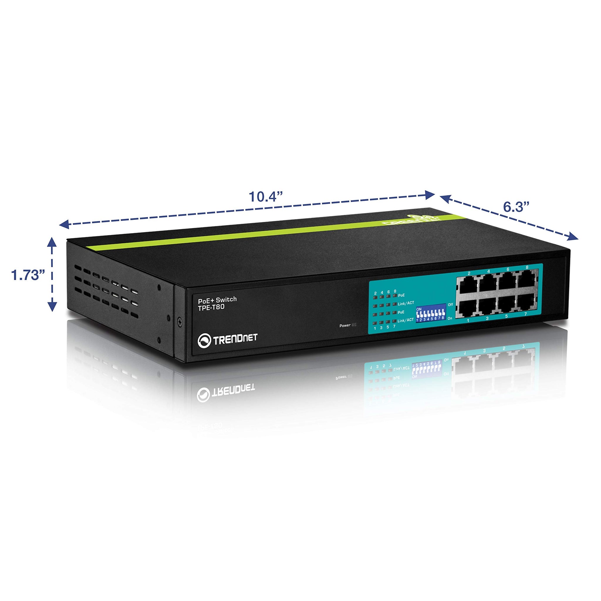 Details: TRENDnet TPE T80 PoE+ Switch - Switch - 8 x 10/100 (PoE) - desktop, rack-mountable - PoE