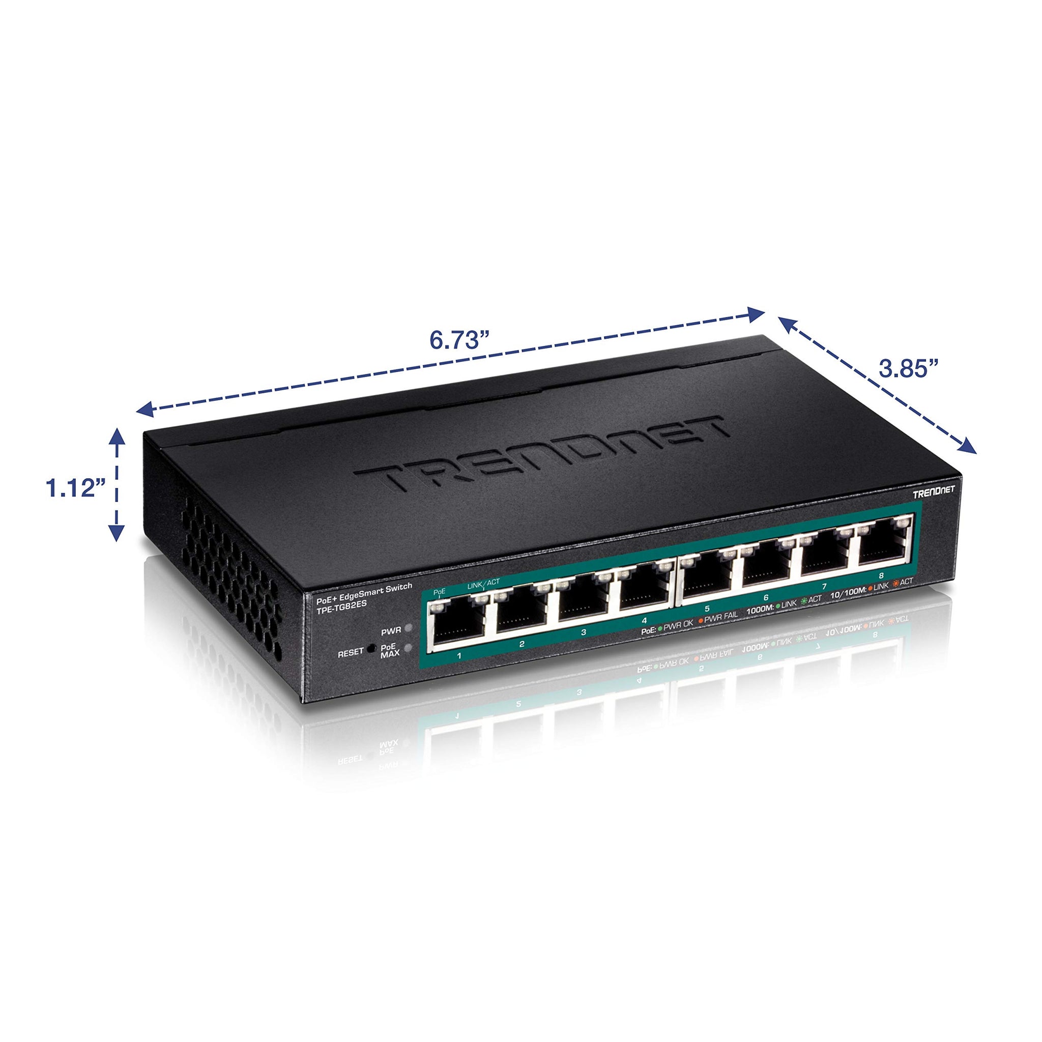 TRENDnet 8-Port Gigabit EdgeSmart PoE+ Switch, 8 x Gigabit PoE+ Ports, Desktop Switch, 64W PoE Power Budget, Managed PoE+ Switch, Wall Mountable, Desktop Ethernet Switch,Lifetime Protection,TPE-TG82ES