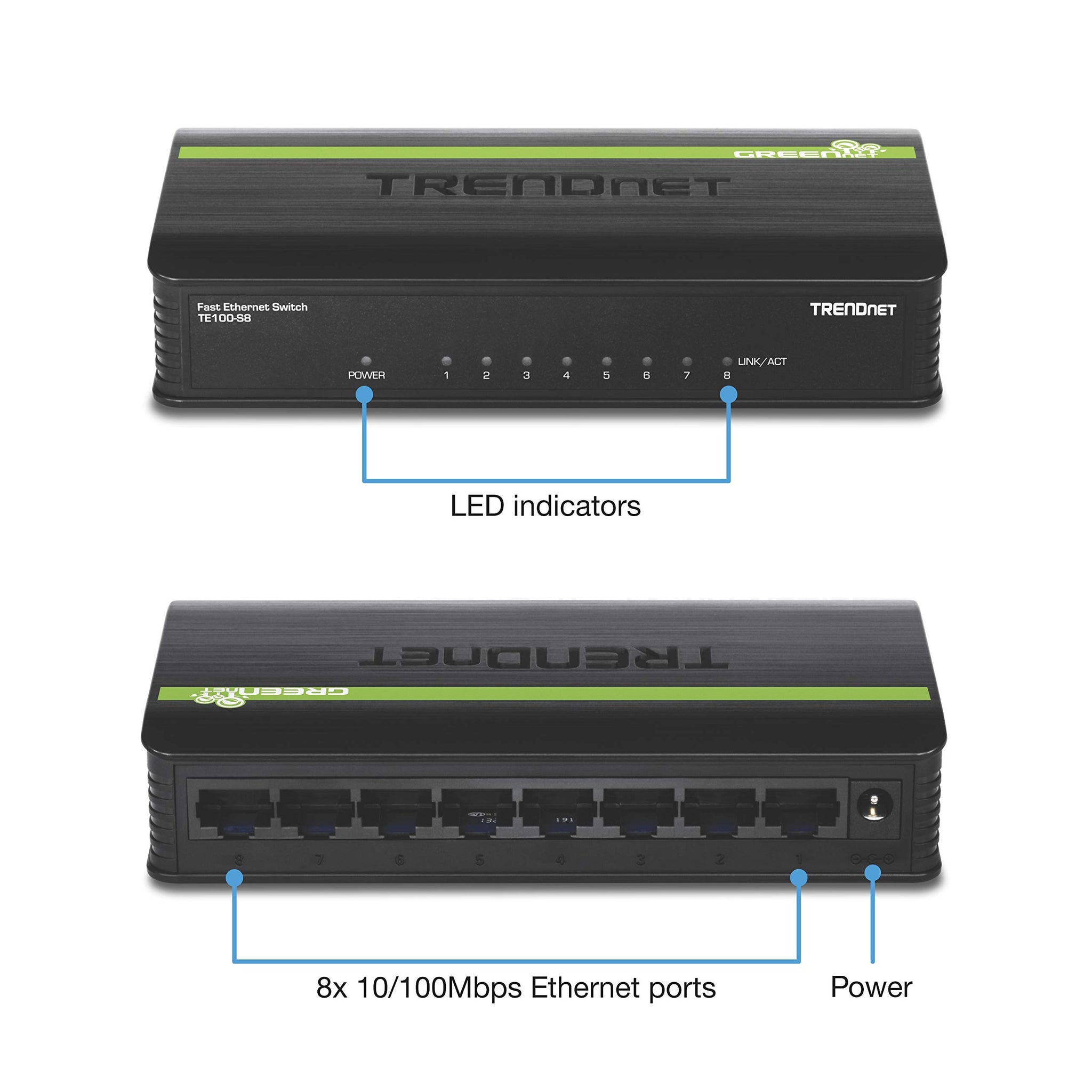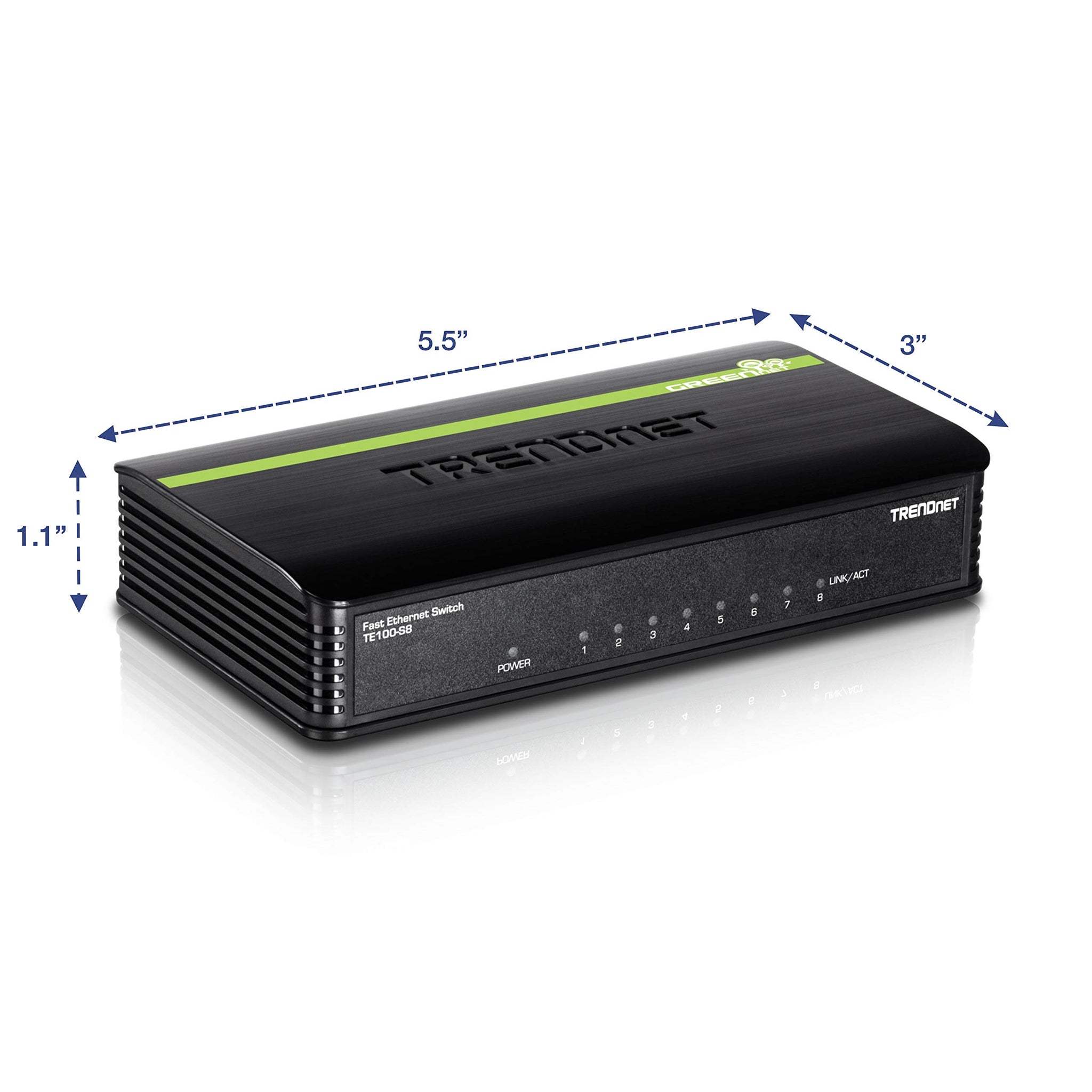 TRENDnet 8-Port Unmanaged 10/100 Mbps GREENnet Ethernet Desktop Plastic Housing Switch,TE100-S8