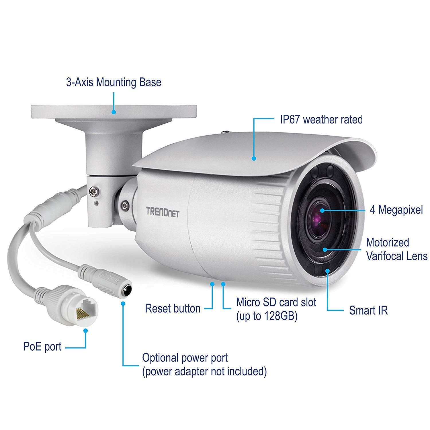 TRENDnet Indoor/Outdoor 4 MP, Motorized Varifocal PoE IR Network Camera, Auto-Focus, Optical Zoom, Digital WDR, Night Vision up to 100ft, IP66 Rated Housing, ONVIF, IPv6, TV-IP344PI