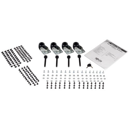 - Locking, reversible front door ; Locking, removable side panels ; Casters and leveling feet