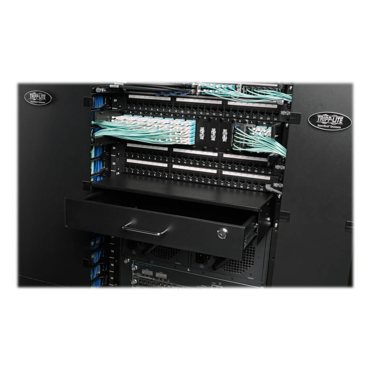 - RACKMOUNT DRAWER 2U: Keeps tools, cables, notes, computer discs, etc. at your fingertips. Lockable drawers are ideal for quick storage in data center, wiring closet and back office racks