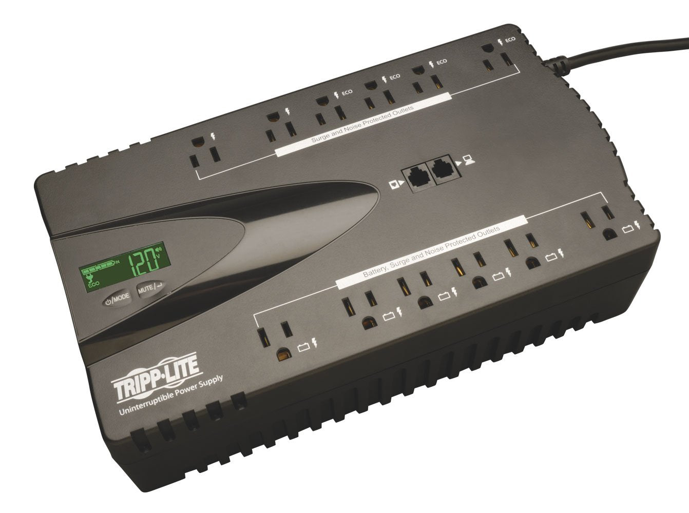 • Standby Battery Back Up: 850 VA 425W 120V ultra-compact desktop Uninterruptable Power Supply (UPS) with energy-saving ECO outlets and LCD screen